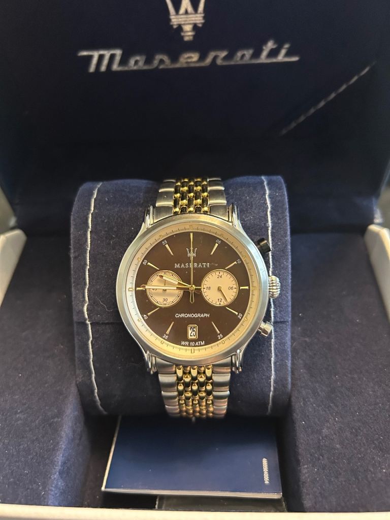 Maserati mens watch in gold and silver ,two years old only worn once good condition £60.00 ono