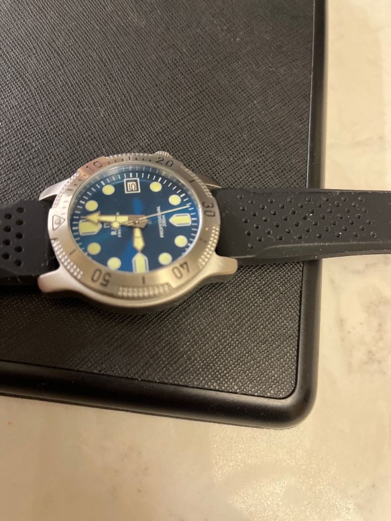 Ratio men’s divers watch , Japanese quartz movement, sapphire crystal with anti reflective coating. Unidirectional bezel with luminous hands and markers. Pressure tested . 2024 purchased.