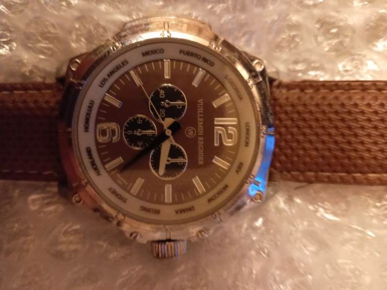 Mens new watch villemin regnier quartz brand new no offers £10 brown leather strap new battery quick sale for more information call me