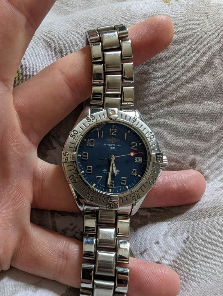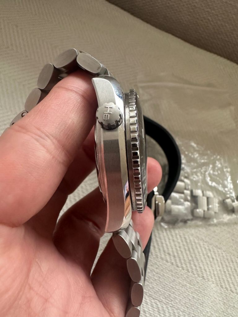 Automatic blue Planet Ocean with links and extra sports bracelet.
