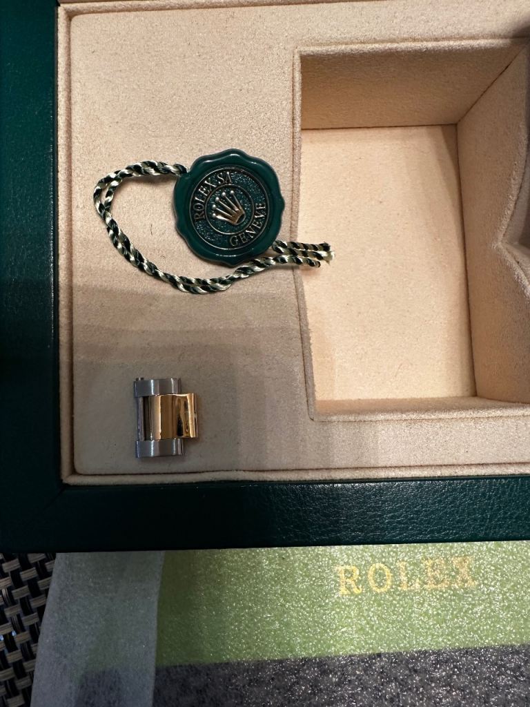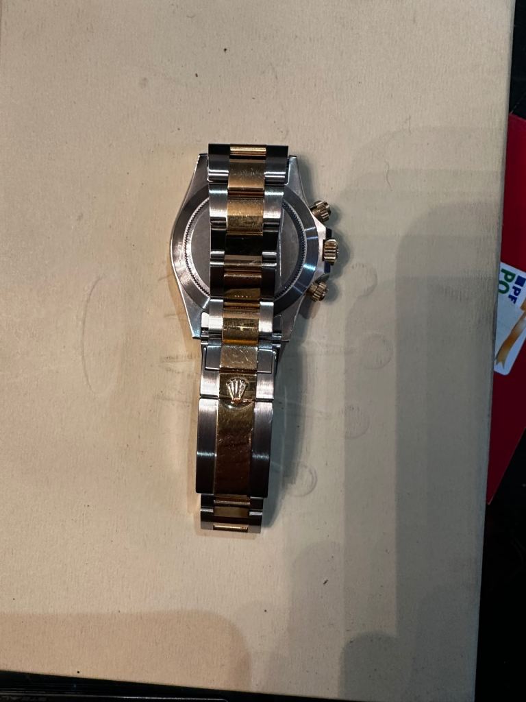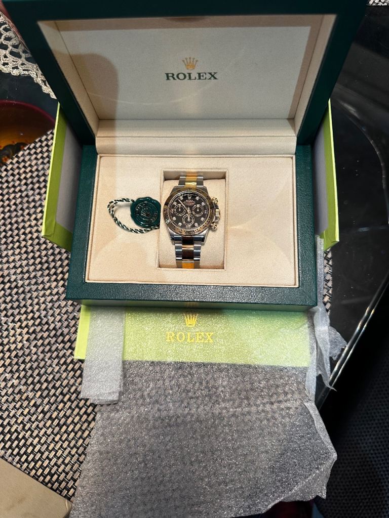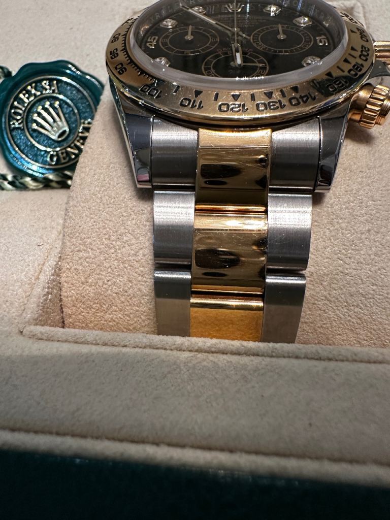 Her is my cosmograph Daytona 2018 gold and silver with diamond numerals only worn 6 times and is in pristine condition. Comes with spare link papers and original boxes. Model 116503