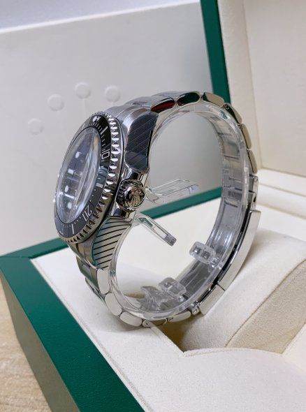 An excellent condition pre-owned 44mm case size Oystersteel Superlative Chronometer, calibre 3135, automatic movement Rolex Deepsea Sea-Dweller D-blue (M116660-0003) featuring a blue and black baton dial, where the colours fade into one another, housing a date aperture at 3 O'clock surrounded by an Oystersteel unidirectional divers bezel with black ceramic 60-minute insert.