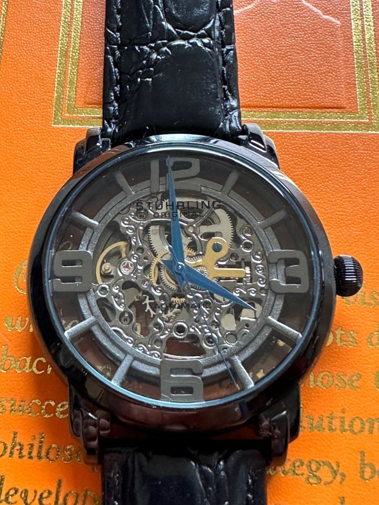 Stührling Original Men’s Skeleton Automatic Watch – Winchester 44 Elite, Stainless Steel Case, Mechanical Movement, Leather Strap.