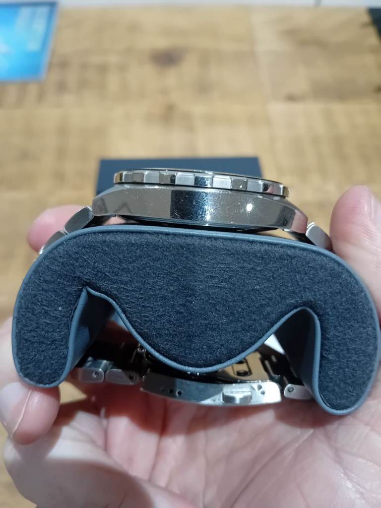 Ceramic anti scratch bezel (its a dusty grey dial) looks much nicer in person.