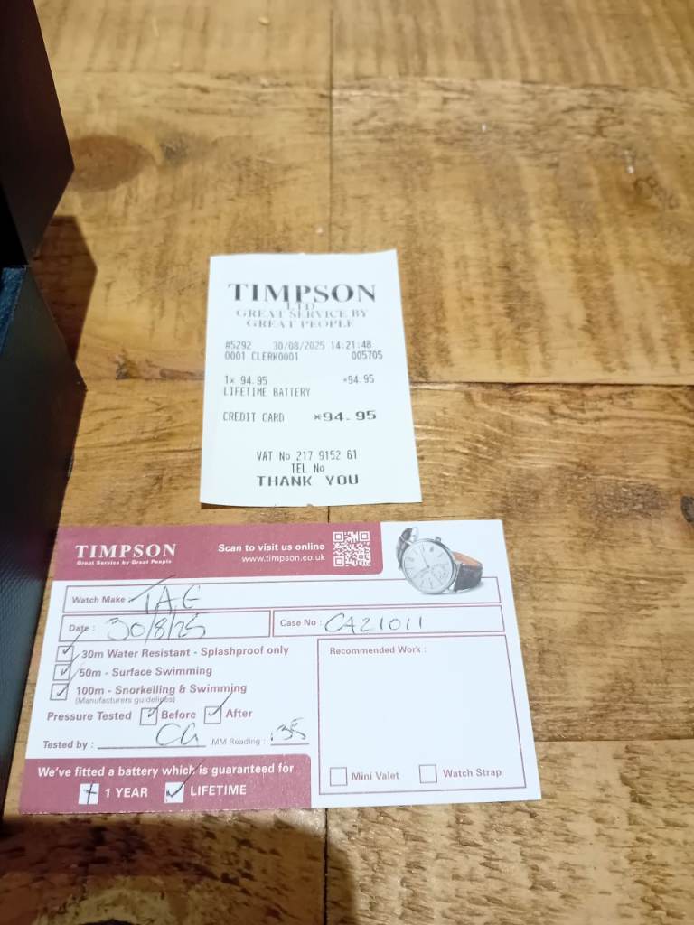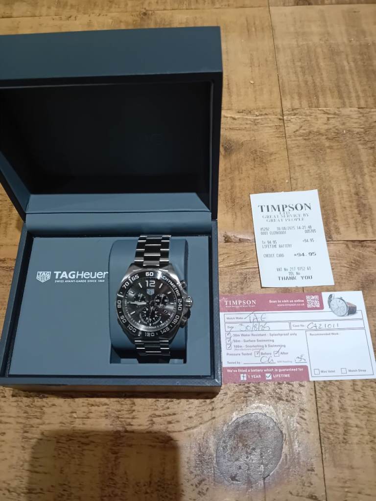 Has been pressure tested and closed for waterproof by timpsons and had a brand new battery put in it (also comes with lifetime battery gaurantee from timpsons so can be replaced anytime it goes for free).