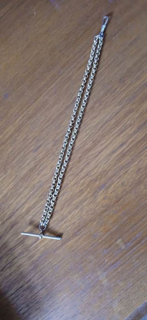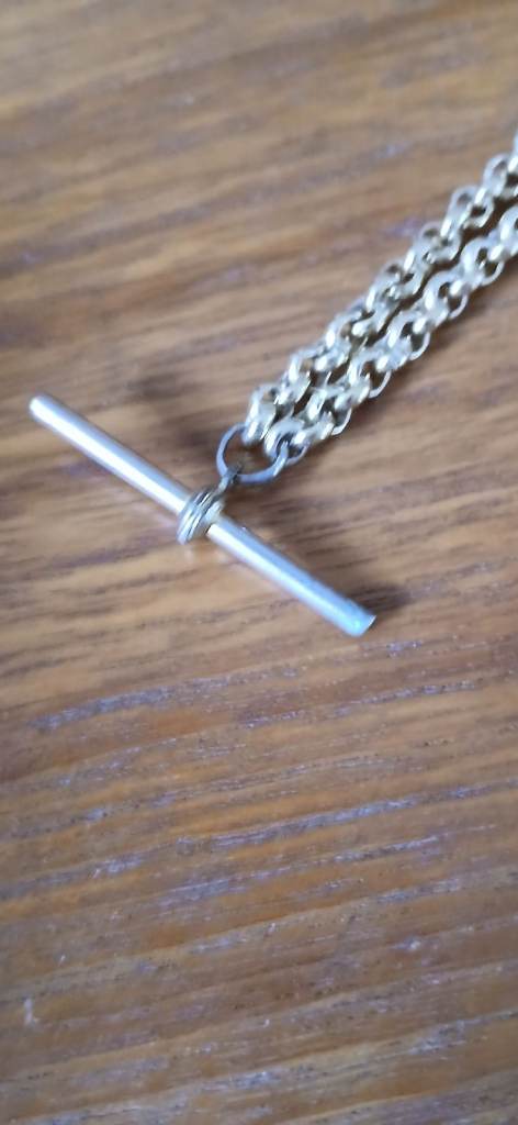 vintage gold tone pocket watch chain t bar & dog clip