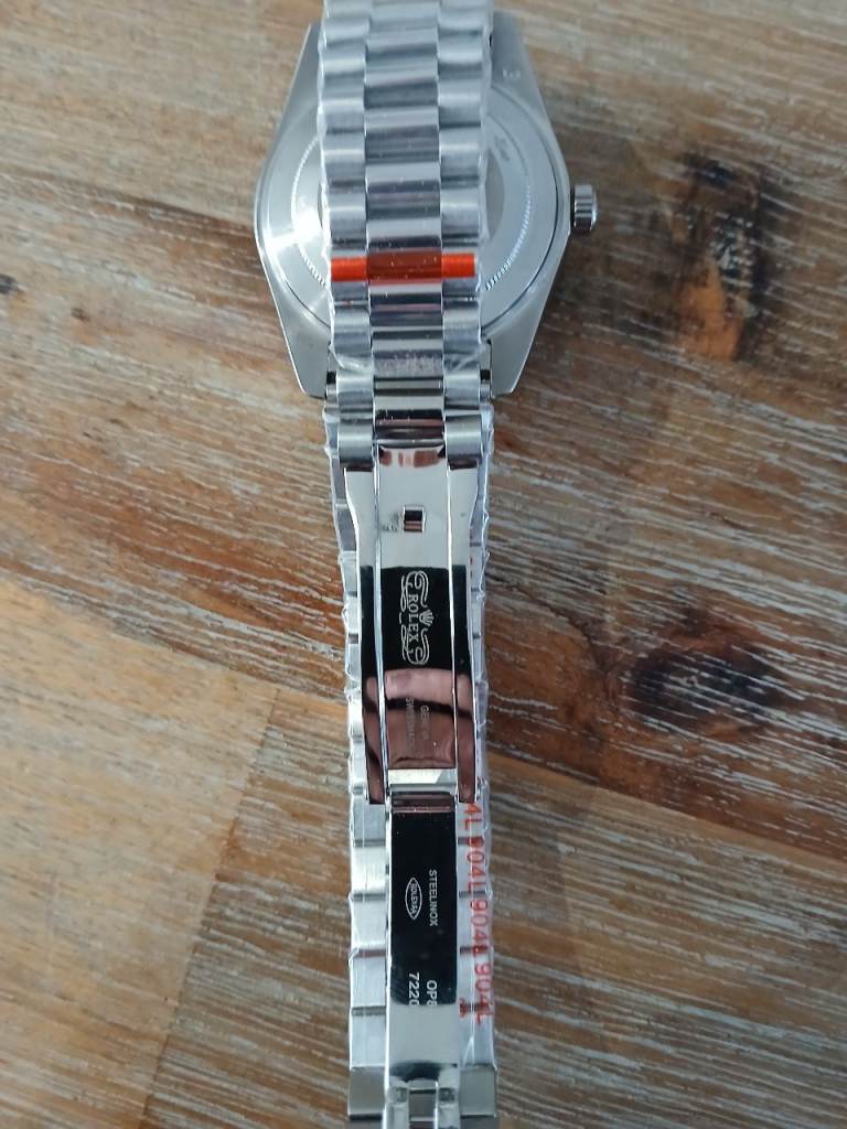 New heavy watch with a perfect sweeping second hand. Perpetual movement. Approx 40mm face. Stainless steel strap with easy opening clasp.