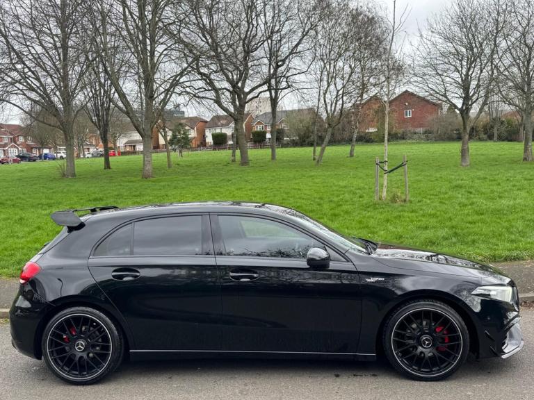 2018 Mercedes-Benz A Class 1.3 A200 Sport Petrol Auto – New Shape - A45S AMG Replica Specification includes widescreen cockpit, MBUX multimedia system, sat nav, DAB radio, Bluetooth, Apple CarPlay, USB Type-C connectivity, LED high-performance headlights, keyless start, half leather interior, dual-zone climate control, cruise control, reverse camera, lane assist, black styling pack, and more.A45S AMG upgrades include full A45s bodykit, A45s AMG 19-inch alloys, A45s AMG quad-style exhaust, A45s AMG aero kit, and A45s steering wheel.60,000 genuine miles. Cat S repaired. Drives well. Looks the real deal. Supplied with full V5 logbook. Euro 6 – ULEZ / CAZ compliant.Inspection welcome. 360° video available on request. Part exchange welcome at trade price. Nationwide delivery available. Viewings by appointment. Please call or text [Phone number removed] for further information.