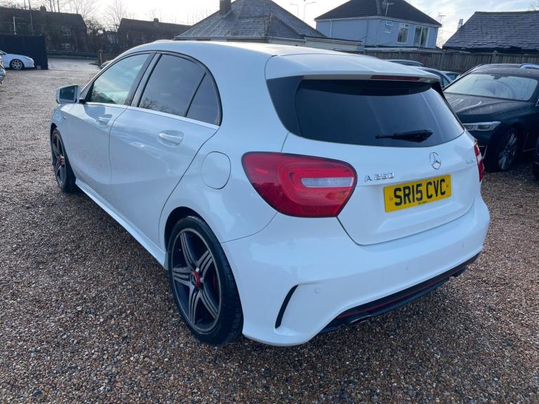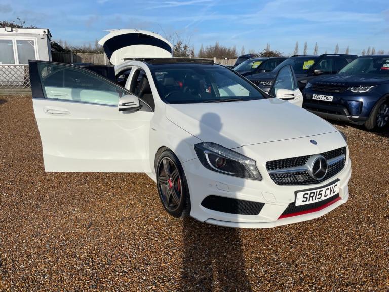 6 MONTHS NATIONWIDE WARRANTY, 12 Months Free AA Breakdown Cover, Hpi Clear, Just Been Serviced, all previews MOTs available, we are located at CANVEY ROAD, CANVEY ISLAND, ESSEX, SS8 0QD, This 2015 Mercedes Benz A Class A250 Engineered by AMG offers a compelling blend of performance and refinement. Featuring a potent 2.0L petrol engine paired with a four wheel drive system, this Euro 6 compliant model delivers an engaging driving experience. Notable features include Bi-Xenon headlights with automatic activation, ensuring excellent visibility, and air conditioning for comfort in all conditions. The integrated Bluetooth system allows for seamless connectivity on the go.The A250 Engineered by AMG stands out with its impressive acceleration, achieving 0-62mph in just 6.5 seconds, demonstrating its dynamic capabilities. This performance, combined with its substantial boot space, makes it a versatile choice for both spirited drives and everyday practicality. These attributes highlight how this particular Mercedes Benz A Class offers a superior proposition compared to other vehicles in its class.