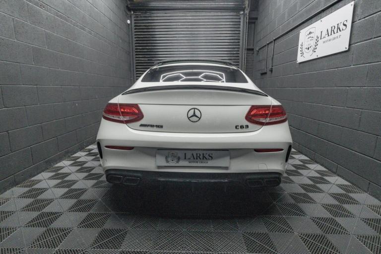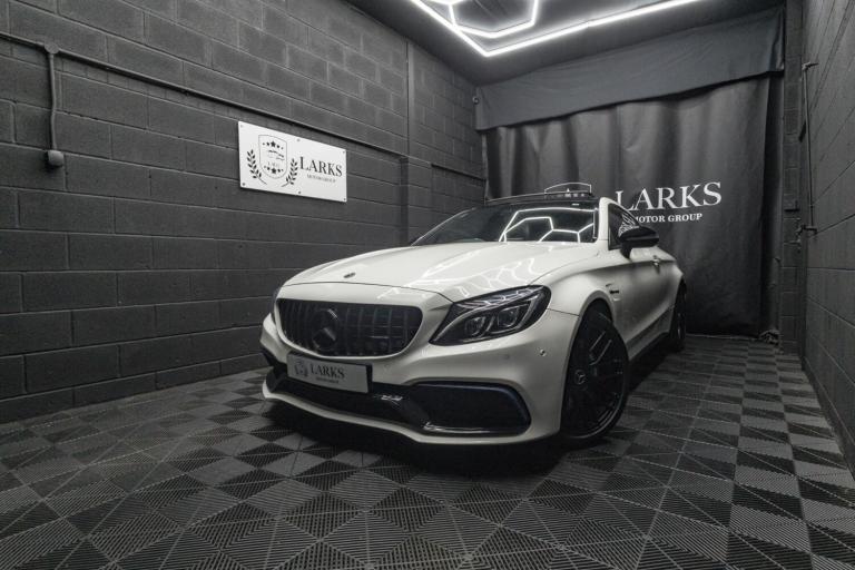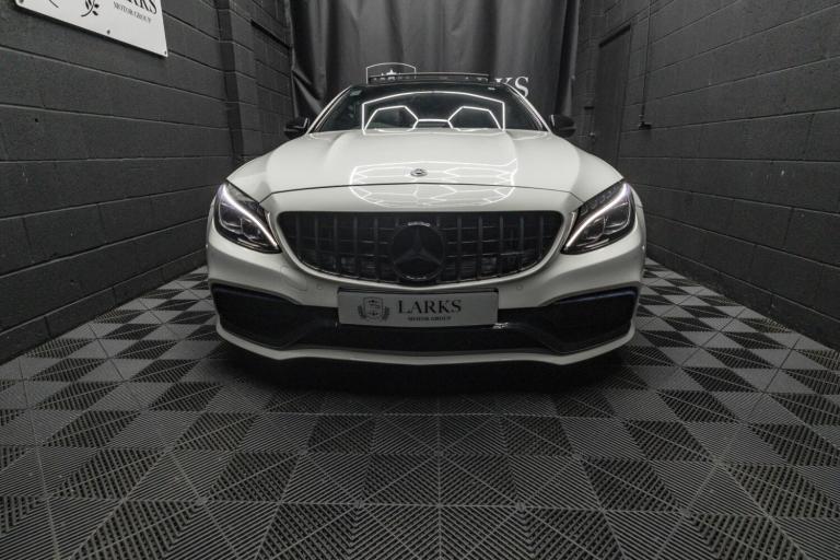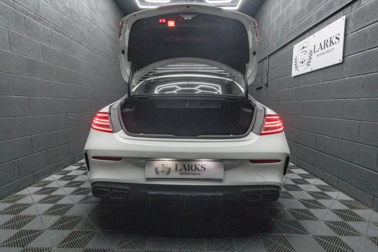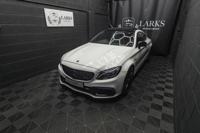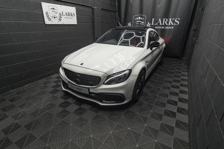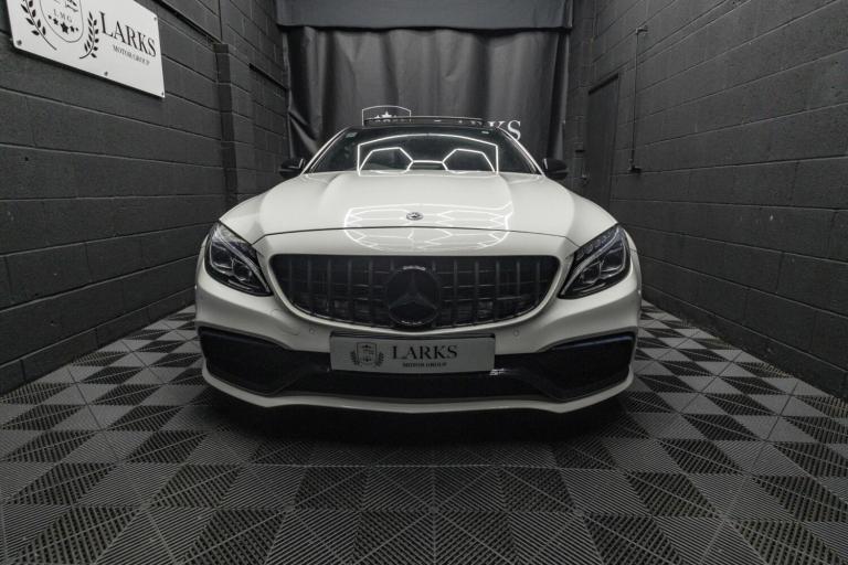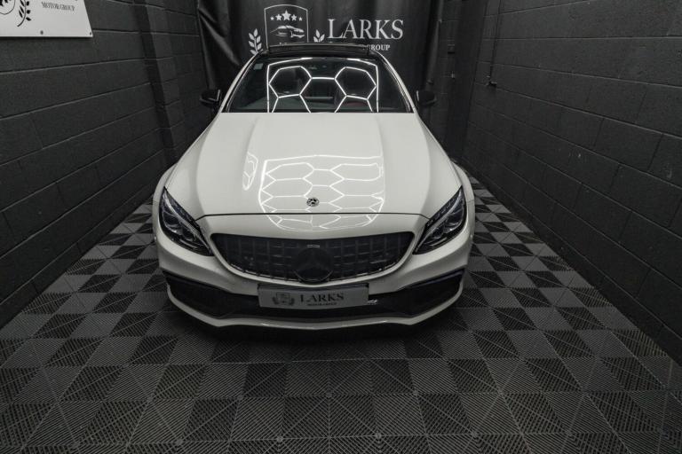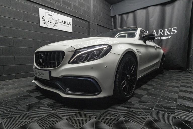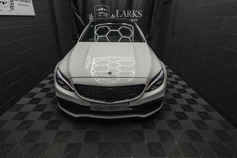 Larks Motor Group is proud to present this stunning 2018 Mercedes-Benz C63 AMG, finished in Polar White with AMG Black alloy wheels, 19 up front and 20 rears in the desirable staggered setup, giving it an aggressive, purposeful stance.Beneath the bonnet sits the legendary 4.0-litre twin-turbo V8, delivering breathtaking performance and that unmistakable AMG soundtrack. Matched to the AMG Speedshift automatic gearbox, it offers the perfect mix of brutal acceleration and refined cruising.Step inside and youre greeted by a premium interior with half black, half red AMG sports seats, offering electric adjustment, memory settings, and heating for maximum comfort. A sliding panoramic roof floods the cabin with light, while the AMG performance steering wheel puts control right at your fingertips.Tech highlights include the Burmester upgraded surround sound system, Bluetooth multimedia for calls and music streaming, sat nav, and a speed limit display for extra driver awareness. This C63 is as well equipped as it is powerful, blending everyday usability with serious AMG performance.As with all Larks Motor Group vehicles, this car comes with a 3-month warranty as standard, with extended cover available for extra peace of mind.A striking, well-specced example of one of AMGs finest creations, contact Larks Motor Group today to book a viewing or test drive.Larks Motor Group - Driven by Excellence