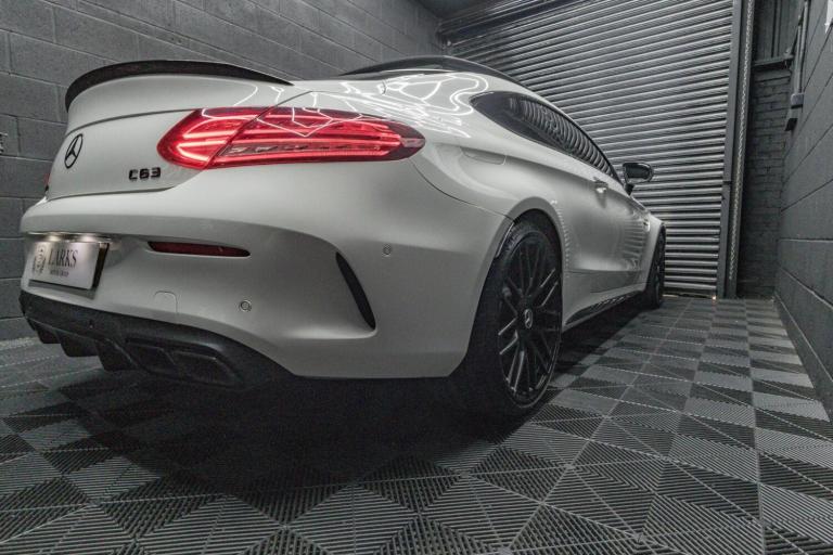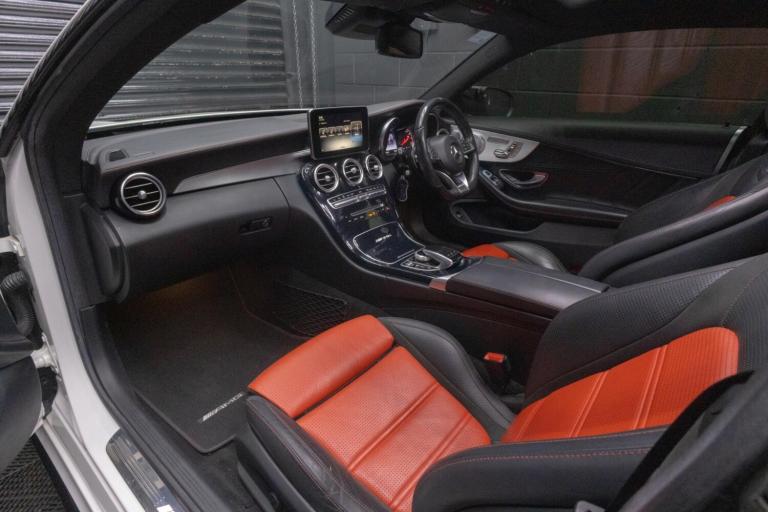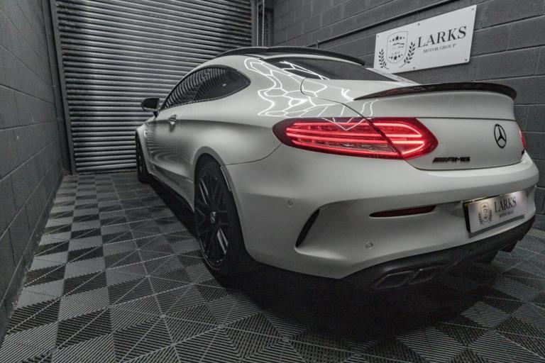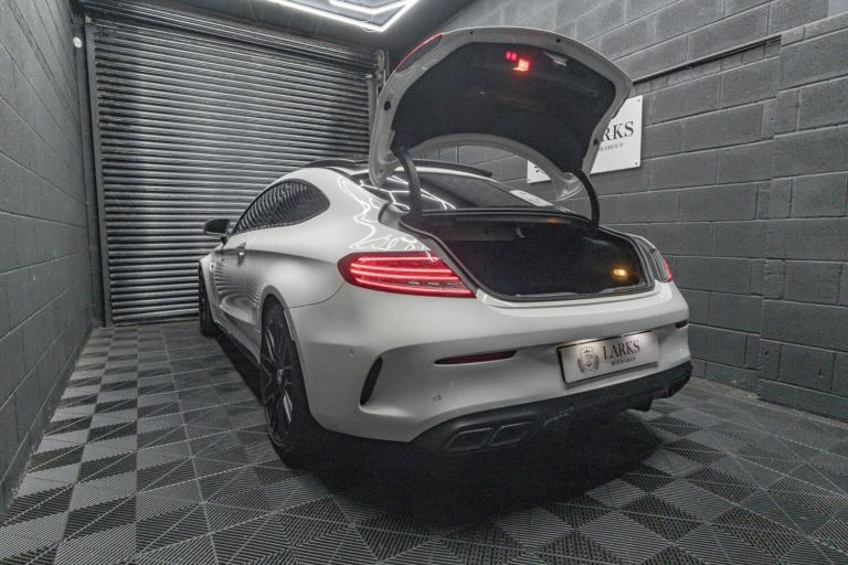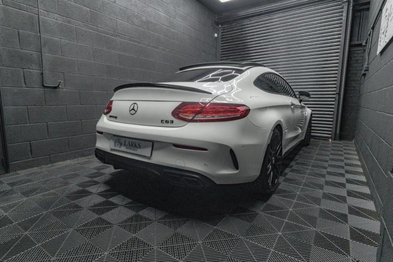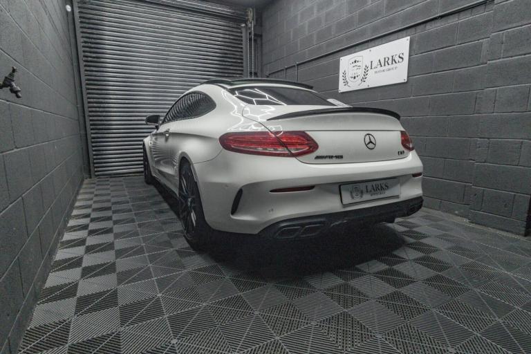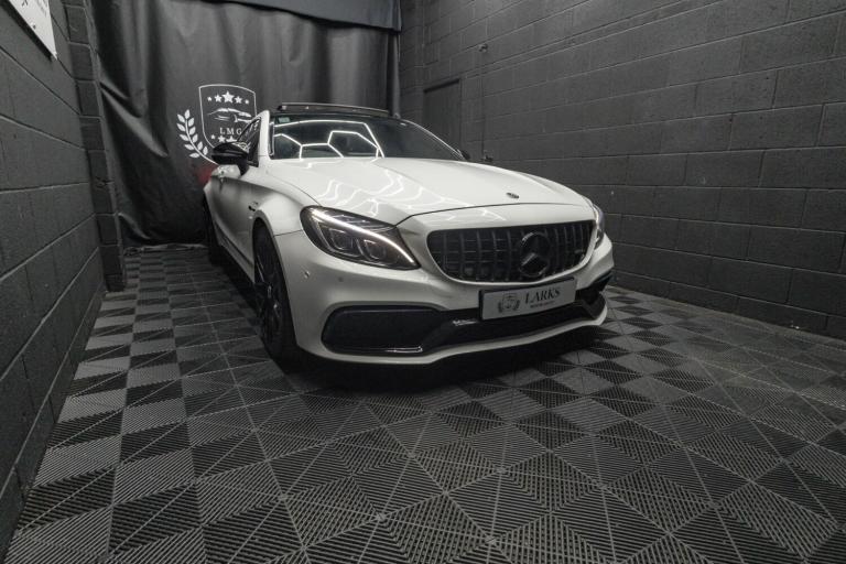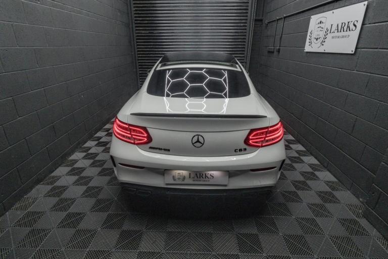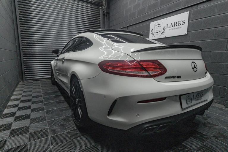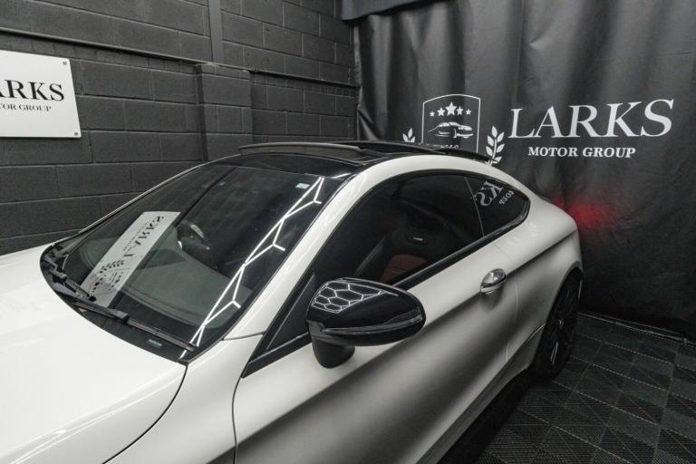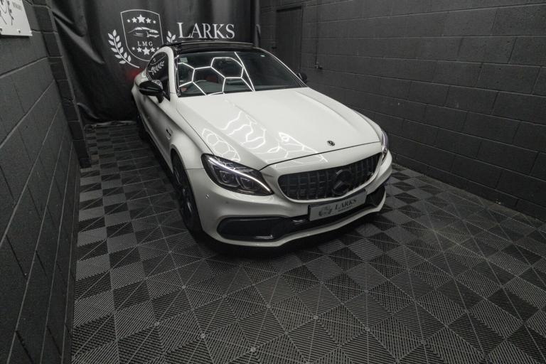 Larks Motor Group is proud to present this stunning 2018 Mercedes-Benz C63 AMG, finished in Polar White with AMG Black alloy wheels, 19 up front and 20 rears in the desirable staggered setup, giving it an aggressive, purposeful stance.Beneath the bonnet sits the legendary 4.0-litre twin-turbo V8, delivering breathtaking performance and that unmistakable AMG soundtrack. Matched to the AMG Speedshift automatic gearbox, it offers the perfect mix of brutal acceleration and refined cruising.Step inside and youre greeted by a premium interior with half black, half red AMG sports seats, offering electric adjustment, memory settings, and heating for maximum comfort. A sliding panoramic roof floods the cabin with light, while the AMG performance steering wheel puts control right at your fingertips.Tech highlights include the Burmester upgraded surround sound system, Bluetooth multimedia for calls and music streaming, sat nav, and a speed limit display for extra driver awareness. This C63 is as well equipped as it is powerful, blending everyday usability with serious AMG performance.As with all Larks Motor Group vehicles, this car comes with a 3-month warranty as standard, with extended cover available for extra peace of mind.A striking, well-specced example of one of AMGs finest creations, contact Larks Motor Group today to book a viewing or test drive.Larks Motor Group - Driven by Excellence