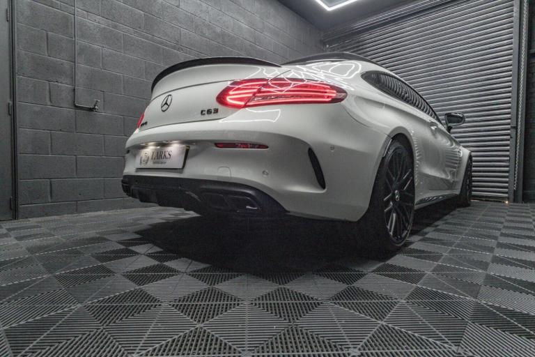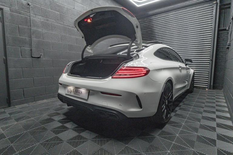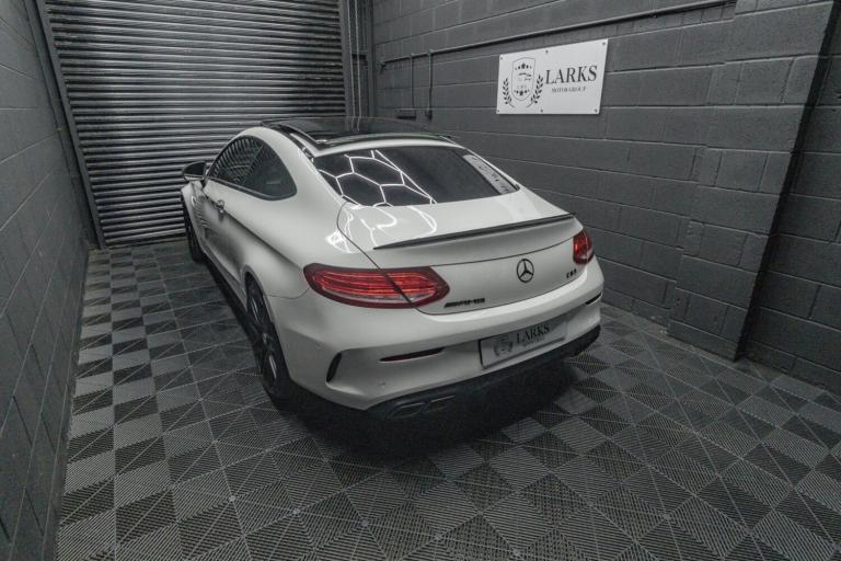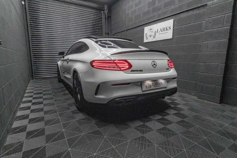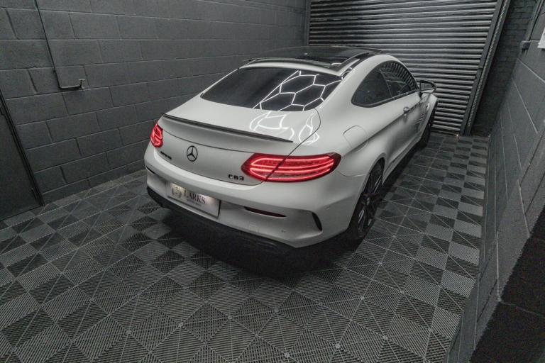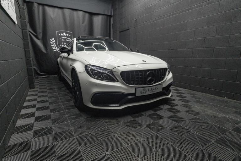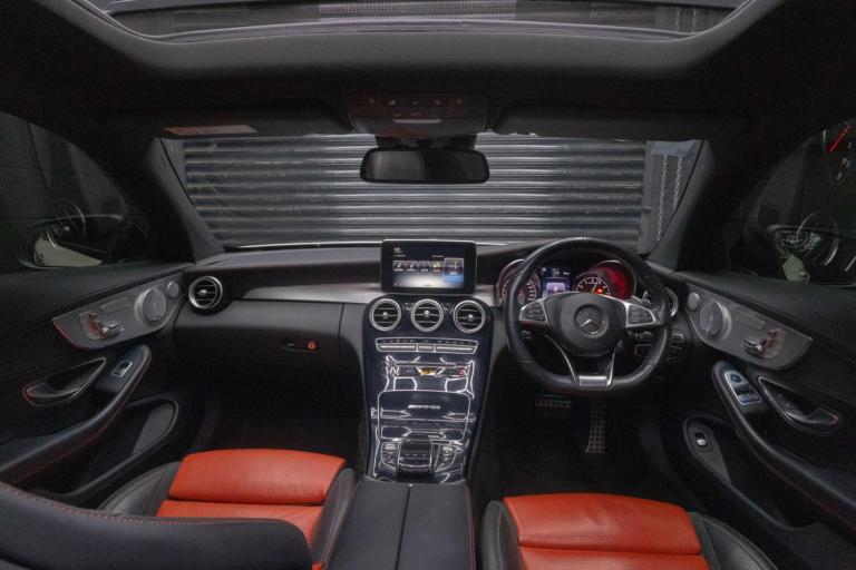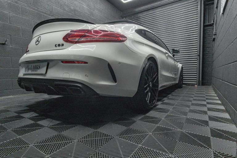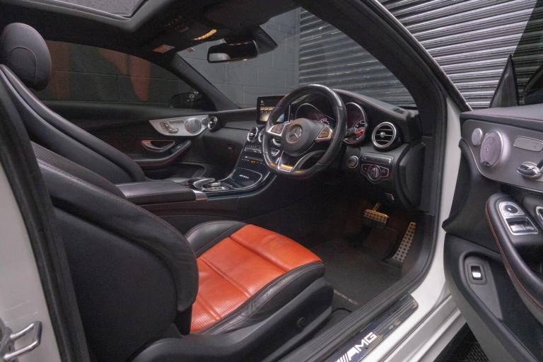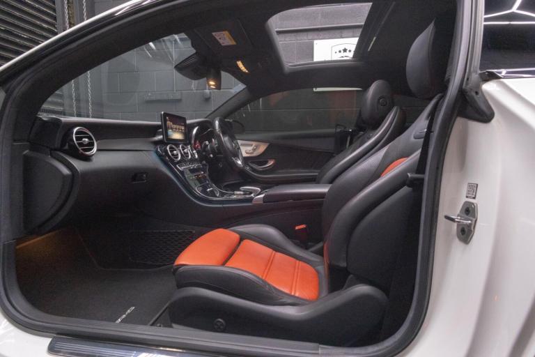 Larks Motor Group is proud to present this stunning 2018 Mercedes-Benz C63 AMG, finished in Polar White with AMG Black alloy wheels, 19 up front and 20 rears in the desirable staggered setup, giving it an aggressive, purposeful stance.Beneath the bonnet sits the legendary 4.0-litre twin-turbo V8, delivering breathtaking performance and that unmistakable AMG soundtrack. Matched to the AMG Speedshift automatic gearbox, it offers the perfect mix of brutal acceleration and refined cruising.Step inside and youre greeted by a premium interior with half black, half red AMG sports seats, offering electric adjustment, memory settings, and heating for maximum comfort. A sliding panoramic roof floods the cabin with light, while the AMG performance steering wheel puts control right at your fingertips.Tech highlights include the Burmester upgraded surround sound system, Bluetooth multimedia for calls and music streaming, sat nav, and a speed limit display for extra driver awareness. This C63 is as well equipped as it is powerful, blending everyday usability with serious AMG performance.As with all Larks Motor Group vehicles, this car comes with a 3-month warranty as standard, with extended cover available for extra peace of mind.A striking, well-specced example of one of AMGs finest creations, contact Larks Motor Group today to book a viewing or test drive.Larks Motor Group - Driven by Excellence