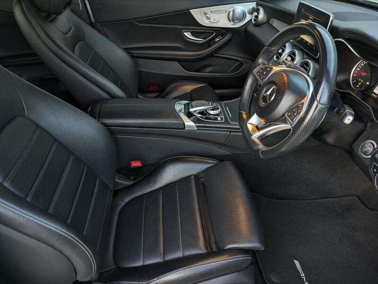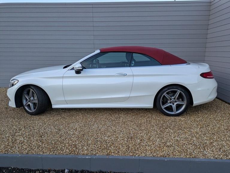 Artico Leather Black,Black Ash wood with analogue clock,designo diamond white,Premium Plus for Cabriolet Sport / AMG Line / AMG C43,Red,Soft-top in red,12v power outlet located in front section front,2143 cc 2.1 litres in-line 4 engine with 83.0 mm bore 99.0 mm stroke 16.2 compression ratio and four valves per cylinder Engine code: OM 651,40/20/40 split folding rear seats: bench/sports type with space for two people; with zero electric adjustments front,50 litre 11.0 UK gallon main fuel tank main,ABS,Aerial,Alloy & leather multi-function steering wheel electrically adjustable with tilt adjustment and telescopic adjustment,AMG Line trim level - JATO classification: S1,Analogue & TFT dashboard,Anticorrosion warranty: 360 months Unlimited miles Unlimited km,Anti-theft protection with interior monitoring,Audio system with digital media card reader and CD player that reads MP3 CDs ; radio receives AM/FM/LW digital and RDS colour screen,Automatic air conditioning with two climate control zones,Automatic hazard lights,Automatic smart card/key includes keyless entry and keyless start,Black paint,Bluetooth includes phone connection and music streaming,Body colour power door mirrors ; heated and light sensitive with integrated indicator lights body colour power door mirrors ; heated with integrated indicator lights driver,Body colour power door mirrors ; heated and light sensitive with integrated indicator lights body colour power door mirrors ; heated with integrated indicator lights passenger,Brake assist system,Central door locking: Operated by card key Includes windows,Centre armrest between front seats,Charges: VAT [20%] = 7115.00 VED (Standard Rate) = 450.00 FRF = 55.00 VED (First Year 111 - 130 g/km) = 160.00 Additional Charges (GB) = 25.00,Chrome/bright trim around side windows and on bumpers,Collision warning system which activates brake lights and brakes at low speed and includes brake assist driver monitor and visual/acoustic warning ; min speed 7 km/h,Computer includes average speed average fuel consumption instantaneous fuel consumption and range for remaining fuel,Connections for USB (front),Cornering brake control,Cruise control,Cup holders for front seats and rear seats front seats,Cup holders for front seats and rear seats rear seats,Data completeness: up to date pricing data up to date data for key leasing items specifications data from official price list up to date colour & trim data up to date option pricing data and up to date option content data,Date introduced: Model introduced 01 Dec 2016 and Version introduced 01 Dec 2016,Day time running lights,Driver and passenger seat: individual type heated electrically adjustable seven electrical adjustments driver,Driver and passenger seat: individual type heated electrically adjustable seven electrical adjustments passenger,Dual 7.0 inch multi-function display screen(s),Easy entry,Electrically foldable mirrors,Electric wind deflector behind seats,Electronic brake distribution,Electronic hand brake,Electronic traction control,Emissions: EU6 compliant 126 g/km CO2 (max) 0.19010 g/km carbon monoxide 0.081 g/km HC+NOx 0.068 g/km NOx 0.000 g/km particulate matter and 71 dB noise level,Engine start/stop,External dimensions: 4686mm long 1810mm wide 1409mm high 2840mm wheelbase 1563mm front track 1546mm rear track 11220mm turning circle (kerb to kerb) 184.5 inches long 71.3 inches wide 55.5 inches high 111.8 inch wheelbase 61.5 inch front track 60.9 inch rear track and 36.8 foot turning circle (kerb to kerb),External temperature,Fixed delivery charges: 635.00 529.17 (excluding VAT) fuel included 0 litres,Floor console floor,Floor mats,Four disc brakes including four ventilated discs,Four seats configured 2+2,Front and rear bumpers front,Front and rear bumpers rear,Front and rear reading lights front,Front and rear reading lights rear,Front and rear side airbag includes head protection front,Front and rear side airbag includes head protection rear,Front electric windows.NEW MOT & FULL PRE-DELIVERY INSPECTION INCLUDED BEFORE HANDOVER.Full finance facilities and nationwide delivery available.Part exchange welcome – cars, pickups, and vans.Family-run business established for over 30 years with 3,000 independently collected great reviews.