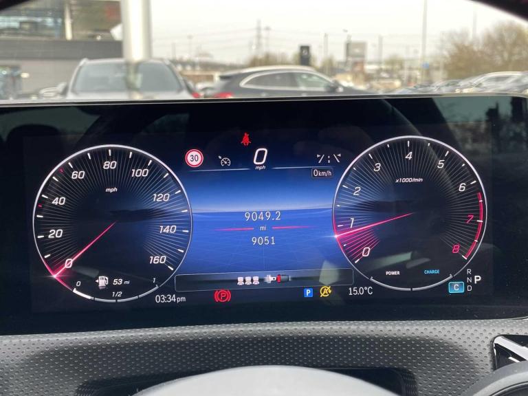 This 2023 Mercedes Benz CLA180h AMG Line (Executive) boasts exceptionally low mileage for its age, having covered just 9050 miles. As a Mercedes Benz manufacturer approved vehicle, it comes with the reassurance of a full dealership service history and an MOT valid until November 2026. This stylish CLA features the sporty AMG Line trim and is powered by an efficient 1.3L petrol hybrid engine, meeting Euro 6 emission standards.The fuel economy of this CLA is a notable highlight, achieving an impressive 55 mpg, which is significantly better than many comparable vehicles. Furthermore, its low CO2 emissions contribute to a more environmentally conscious driving experience. This combination of excellent fuel efficiency and low emissions, alongside its premium Mercedes Benz credentials and sporty AMG Line styling, makes this CLA a compelling choice.