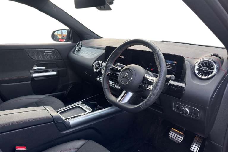 This 2025 Mercedes Benz EQA 250 AMG Line Executive offers an impressive electric driving experience with a substantial 78 kWh battery providing a maximum range of 346 miles from new. This electric vehicle presented in the sporty AMG Line trim seamlessly integrates technology and comfort. Enjoy effortless connectivity with Smartphone Integration including Android Auto and Apple CarPlay while the heated front seats ensure a pleasant journey in all conditions. Navigating tight spaces is made simple with the Parking Package and Reversing Camera and for added peace of mind Blind Spot Assist is included. The Mercedes Benz Sound System delivers an immersive audio experience.The EQA 250 AMG Line Executive stands out with its exceptional range of 346 miles demonstrating its capability for longer journeys compared to many other electric vehicles. Charging is convenient with a full charge at home using a 7kW charger taking approximately 11 hours and 56 minutes and rapid charging to 80% achievable in just 40 minutes at a compatible public station. This combination of extensive range efficient charging and advanced features makes this Mercedes Benz EQA a compelling choice for those seeking a premium electric car.