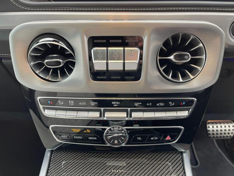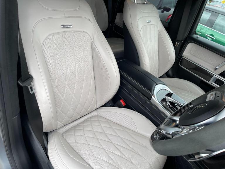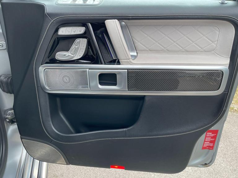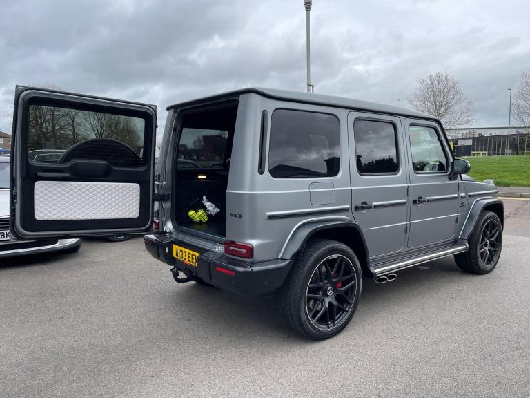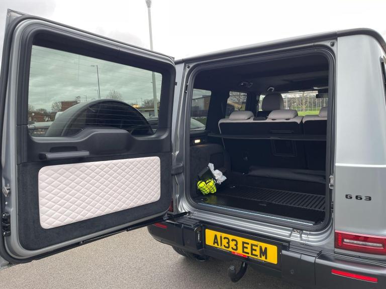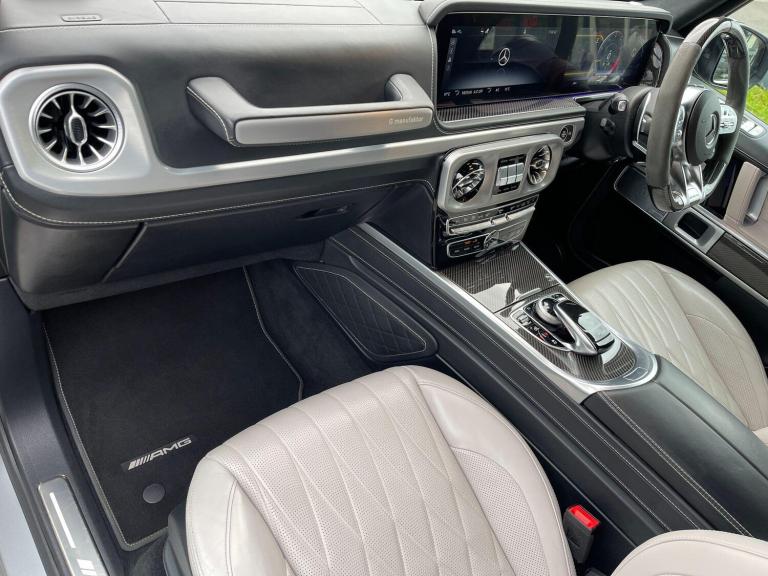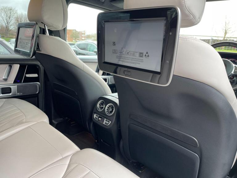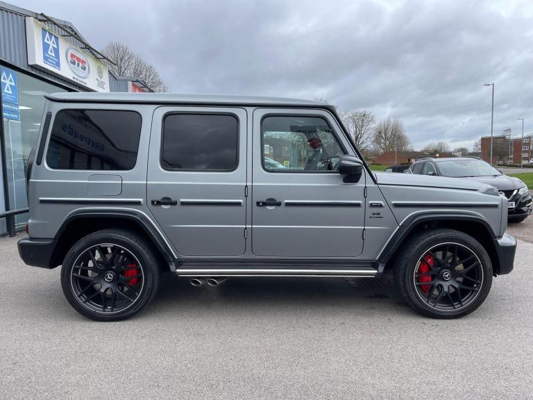 This 2022 Mercedes Benz G Class G63 V8 BiTurbo AMG boasts an exceptionally low mileage of just 23,034 miles, a testament to its careful ownership. This Euro 6 compliant 4.0 litre petrol engine vehicle features a four wheel drive system and comes with a 12 month warranty and 12 months MOT provided on purchase. Its full dealership service history includes a recent service on 01 December 2025, ensuring peace of mind. Notable features include the AMG Carbon Fibre trim, a Rear Seat Entertainment System, and the G Manufaktur Package which adds a G Manufaktur Roof painted in Obsidian Black, along with G Manufaktur Bumpers and Flared Wheel Arches also in Obsidian Black.Experience the impressive performance of this G63 AMG, with its remarkable 0-62mph acceleration in just 4.5 seconds, showcasing its superior power compared to other vehicles in its class. The generous boot space offers practicality for all your needs, while the substantial 3500 kg towing weight provides exceptional versatility. This vehicle represents a compelling combination of luxury, performance, and capability.