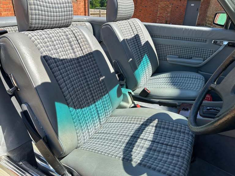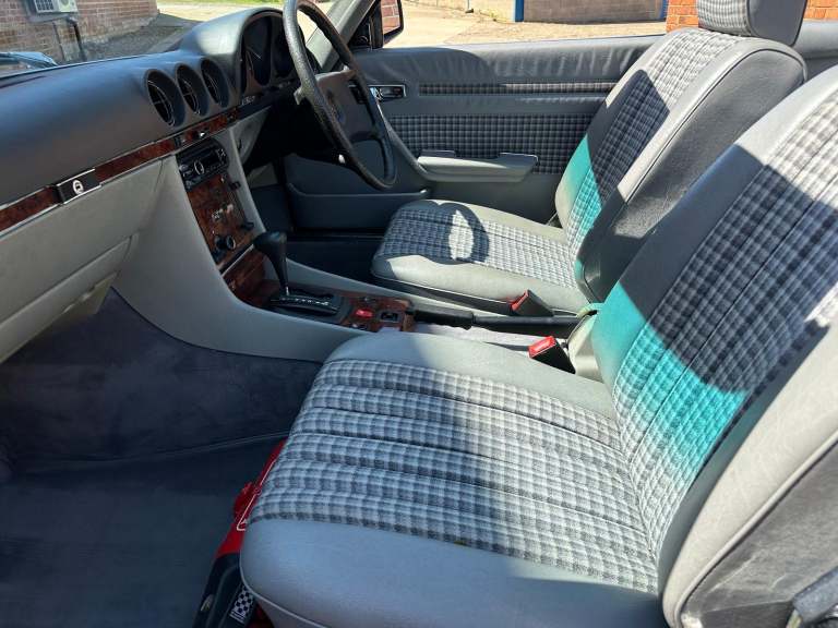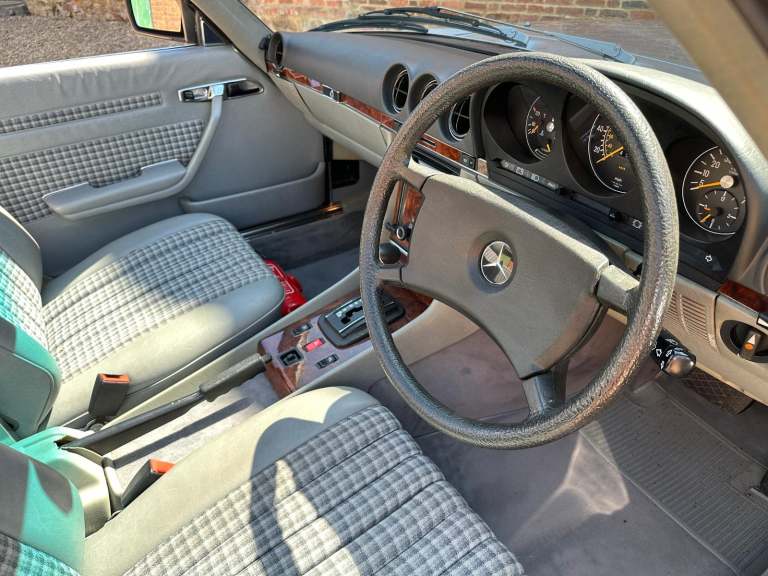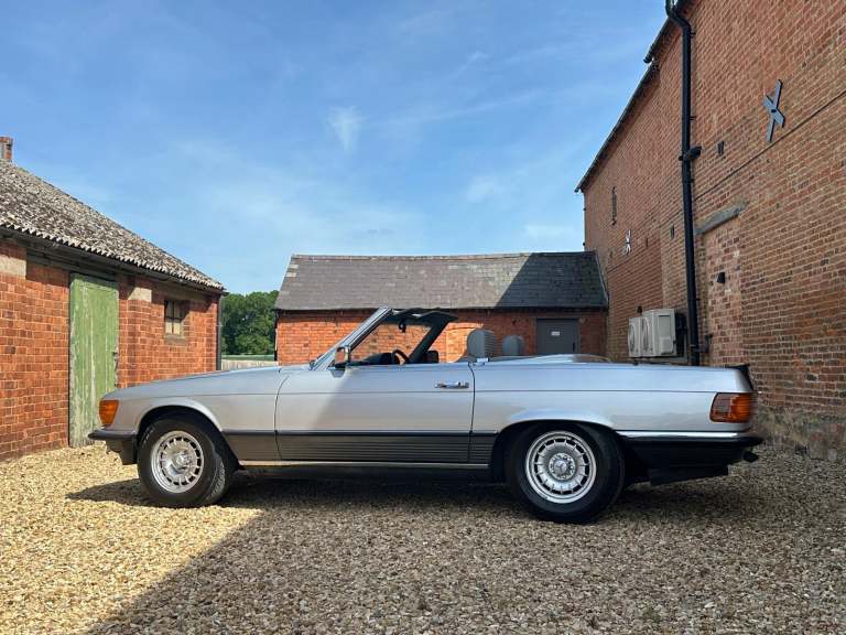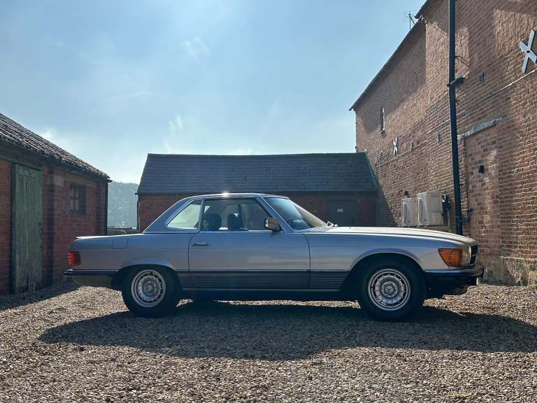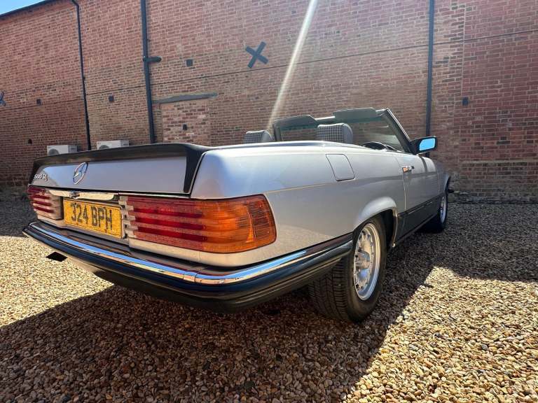 1985 Mercedes Benz 500 SL Automatic. (R107). Astral Silver with Grey Sports Check upholstery, new black soft top and factory hardtop. The Mercedes R107-series SL was launched in 1971 to replace the long-lived W113 'Pagoda' SL that first appeared in 1963. Though dispensing with Mercedes' usual model identification, it was based on the suspension of the W114 Saloon and ran until 1989 with more than 237, 000 examples built, being the longest single series ever produced by Mercedes-Benz except for the G-Wagen. The Bruno Sacco-designed car was bigger, heavier and softer-riding than its predecessor, but can still handle and won the plaudits from distinguished motoring writers including LJK Setright. The 245bhp 500 SL made from 1980 had an all-alloy fuel-injected V8 and was made for Europe only and with 60mph available in 7. 4 secs the top speed was 140mph, faster even than the US, Japan and Australian 560 SL. Plenty of R107s come to market, but 500SLs are still a rarity, with only 11, 812 built. This fabulous R107 has covered just 59,000 miles from new and has been with its last keeper for the last 7 years, he purchased the cart from his uncle who bought the SL in August 1992 so it has effectively been in the same family for the last 33 years. The condition speaks for itself and the car has been cherished from new with just 4 owners in 40 years. The paintwork and upholstery belie their age and present beautifully with clean lines and very straight panels. On the road the car is equally as good with very responsive V8 engine mated to a smooth automatic gearbox that would happily travel around Europe on any road trip if required. Accompanying the 500SL is a sizeable history file containing lots of bills and invoices as well many old MoT test certificates which confirm the low mileage. This is an SL that could easily fit within any collection or equally be enjoyed on the show field or international touring. The Cherished Registration Number 324 BPH will remain on the car and very valuable in its own right. This is an great example of the 5-litre R107 with just 59,000 miles from new and a low ownership. We invite and encourage your inspection of this classic Mercedes. Although now tax and MoT exempt a fresh test will be applied upon sale for your own peace of mind. Absolutely any inspection welcome. All major debit and credit cards accepted. Part exchange considered. Free U.K mainland delivery. Please contact us for any further information. Lots more pictures and a video on our website and Facebook pages.