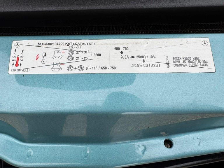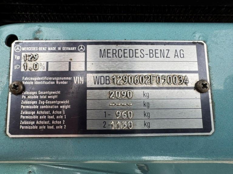 Beautiful low mileage Mercedes-Benz 300SL Roadster (R129) 3.0L 6cylinder (M103) 4 Speed 4G Tronic Automatic in Beryl metallic, matching Hard Top, Black soft top inc. with Cream Beige leather, Featuring: Hard top & Black soft top, 8 Hole alloys, Rear child seats, Burr walnut trim, Electric seats, Wind Deflector, Drivers airbag, Blaupunkt Nashville Radio/Cassette, Blaupunkt Multiplay CD, Expired MOTs from 1997 to date, Current MOT expires 02/27, Owners book pack, Original set of 5 keys, Factory DataCard, Tool kit, nicely preserved & stored, lightly restored, waxoiled chassis, Appreciating modern classic with low mileage!Vehicle DetailsSurvivor example (never been refurbished) in good condition with low mileage, 4 previous owners in 33 years, last owner 18 years, 68,000 miles averaging 2,000 miles per annum, Factory datacard sheet, V5C document, HPI & Experian clearance certificates, MOTs from 1997 through to 2024 verifying mileage, Original key presentation box set with 5 keys, Owners book pack, Wind deflector, Blaupunkt Nashville radio cassette, Multiplay CD in boot, Service & Maintenance invoices, Recently serviced, Been serviced & maintained by a Mercedes specialist over the previous owners stewardship, New battery, Factory tool kit, spare wheel, jack& brace, first aid kit, warning triangle, Soft top replaced 2022. Looking on the How Many Left website theres only around 900 of the original 2,200 registered 300SL vehicles these left in UK. Factory Options R129 with 3.0L M103 R6 injection c.£60,000Metallic Paint code 888U (Beryll/Teal Blue metallic) c.£300 Black soft top code 740 (Black soft top) £NCOLeather interior code 275A (Mushroom Beige) c.£2,000 Rear seats code 565 c.£1,3008 Hole alloy wheels code 652 c.£600Factory aerial & speakers code 538 £NCOGreen tinted glass code 592 c.£125Wind deflector code DA c.£250Blaupunkt Nashville code DA c.£500Blaupunkt Multiplay CD code DA c.£500Black MB carpet mats code DA c.£125Vehicle PerformanceEngine CC 2960 cc Nominal CC 3.0 LDriving Axle REAR Drive Type 4X2Number of Cylinders 6 Power Delivery NORMALAspiration NATURALLY ASPIRATED Fuel Type PETROL Power BHP 190.0Toque 260.0 NmTorque RPM 4500 Power RPM 5700Max Speed MPH 142 Acceleration (0-60 MPH) secs 9.3Vehicle DimensionsHeight 1286 mmWidth 1812 mmLength 4465 mm Additional DataR129 Intro Date 1989-08 Market Sector Code AARange Description SL Visibility Date 01/08/1989Setup Date 01/08/1989Load Length Number of Axles 2Number of Seats 2Weight 1820kgEngine Model Description M 103.984Engine Location FRONT Engine Make MERCEDES CARSEuro Status 0 Cylinder Arrangement INLINECountry of Origin GERMANY