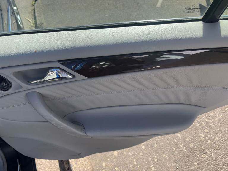 Grey leather interior, dual-zone climate control, ParkTronic parking sensors, auto-dimming mirrors, wood/leather multifunction steering wheel, CD/Radio.