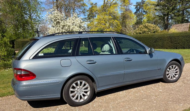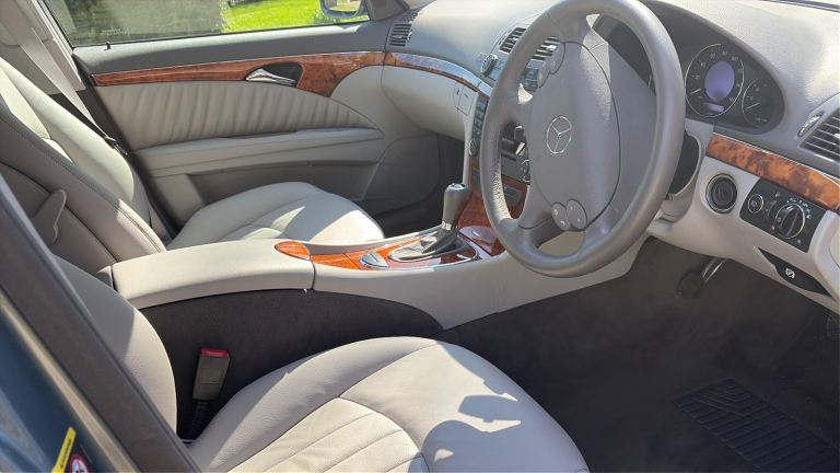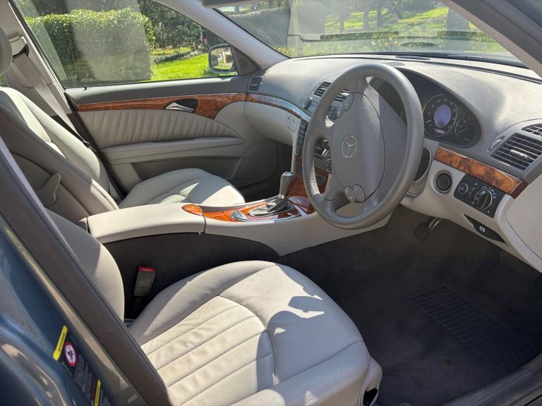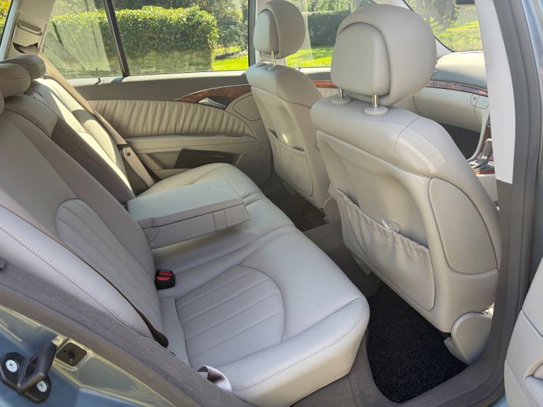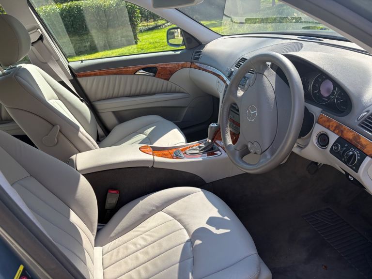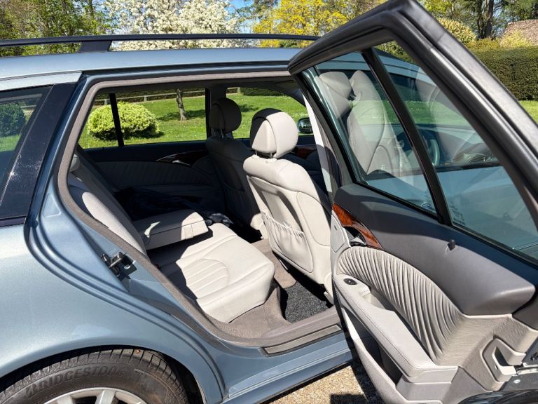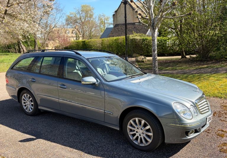 2006 MERCEDES-BENZ E350 V6 ELEGANCE AUTO ESTATE, PETROL, 37K MILES, FULL SERVICE HISTORY, MOT 4/27, LADY OWNER, METALLIC PLATINUM BLUE, PALE GREY LEATHER INTERIOR, WALNUT TRIM, FRONT AND REAR PARKING SENSORS, ELECTRIC FOLDING MIRRORS, CRUISE CONTROL, AIR CONDITIONING, MULTI FUNCTION STEERING WHEEL.
