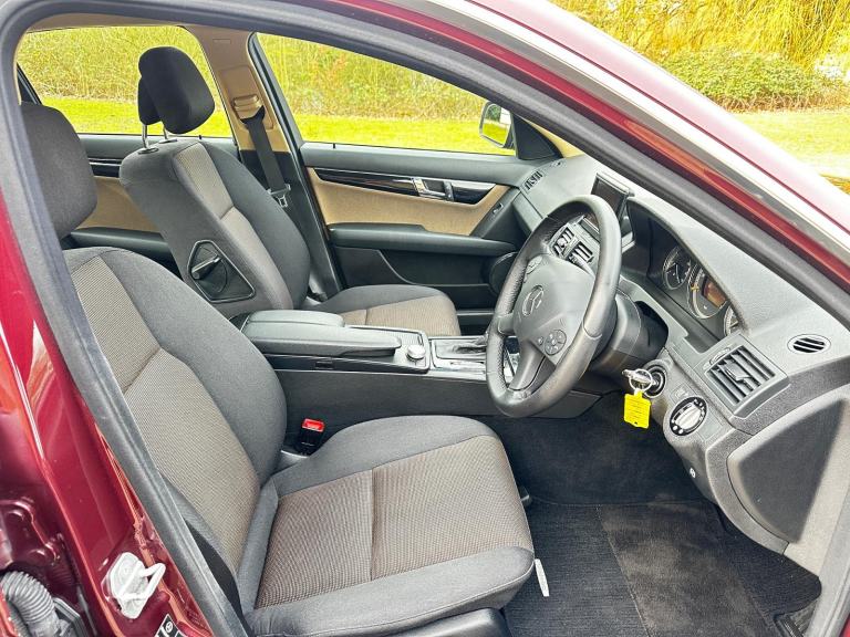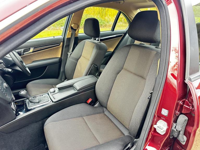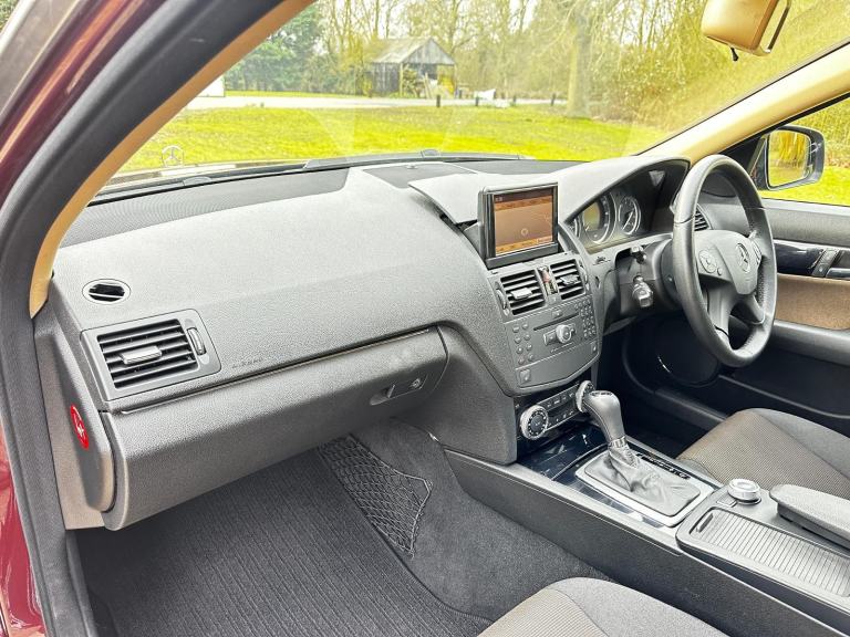 Externally the car presents extremely well with the deep Bordeaux Red Metallic paintwork suiting the C-Class lines beautifully. The overall look is further enhanced by a set of fully refurbished alloy wheels, freshly finished in sparkling silver, which lifts the appearance of the car with a crisp, cared for appearance. Inside, the cabin is equally pleasing with the two tone cloth interior in excellent condition throughout. This particular car benefits from a good level of specification which includes Heated Front Seats, Climate Air Conditioning and the Factory Satellite Navigation that neatly integrates in the dash with the retractable screen allowing the cabin looking uncluttered and typically Mercedes in design. Other features include Electric seat adjustment, Electric Windows all round, Remote Central Locking with 2 keys, Bluetooth phone prep, Child Locks and Inertia seatbelts to all seats for added safety.
