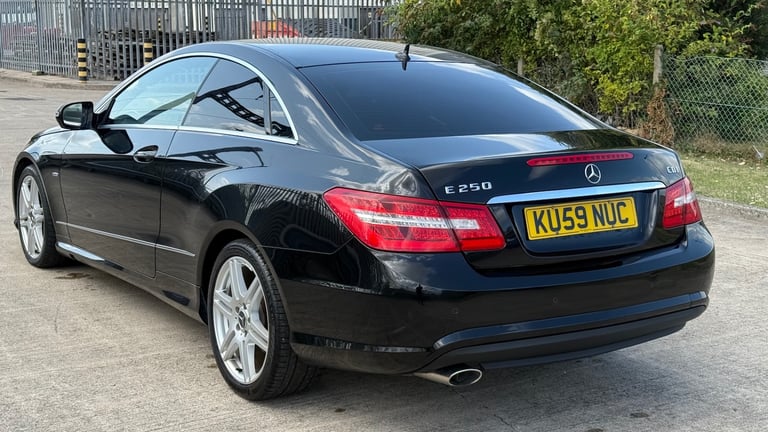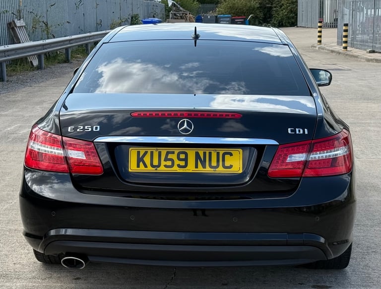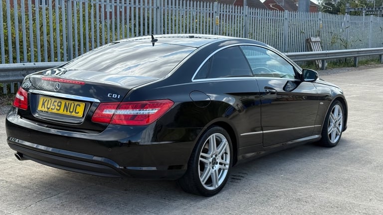 ● **For Sale: 2009 Mercedes-Benz E-Class E250 CDI BlueEFFICIENCY Sport 2dr Tip Auto****Registration:** KU59NUC**Price:** £2,995---● **Vehicle Details*** **Year:** 2009* **Mileage:** 131000 miles* **Fuel Type:** Diesel* **Transmission:** Tiptronic Automatic* **Colour:** Black* **Body Style:** Coupe* **MOT Expiry:** 31/01/2026* **HPI Check:** Pass* **Service History:** 10 services (3 by main dealer)* **Last Serviced:** 24/05/2025 at 130,500 miles---● **Features & Equipment*** HDD Navigation System* Parking Sensors* Dual-Zone Climate Control* Leather Trim* 18"""" Alloy Wheels* Space Saver Spare Wheel* Privacy Glass---● **Additional Info*** **Number of Keys:** 2* **History Checked:** ✅* **Well-Maintained** with Full Service History* **Great Spec & Reliable Engine**