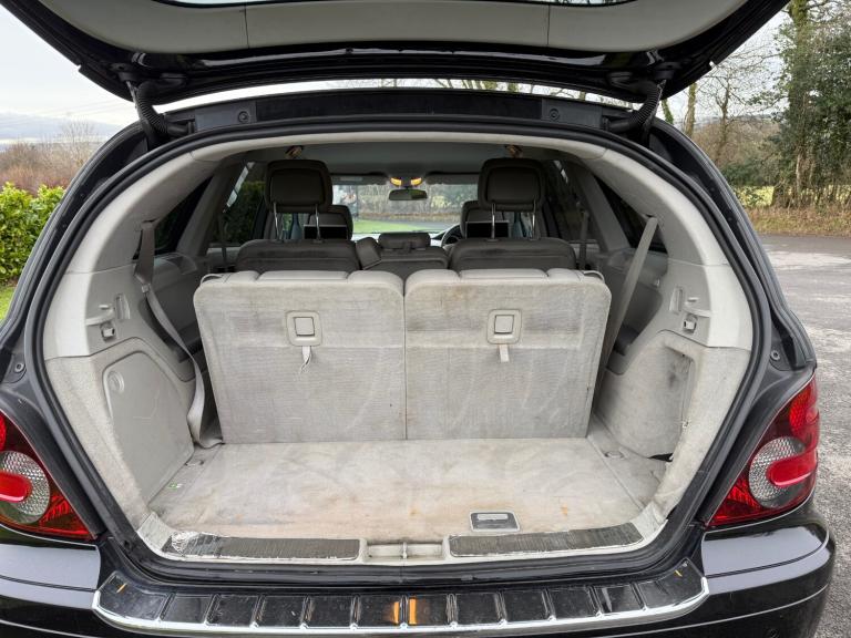 This car is designed as a full-sized 7 seater, but it is also very easy to fold the rear-most seats away flat, to reveal and absolutely huge load area. Access to the rear-most seats is easy with the 2nd row folding forward with the pull of a lever. That 2nd row is also on rails allowing you to further increase legroom and recline for added comfort. The engine is extremely refined and quiet so you can barely tell it is a diesel. Thanks to a sensational wave of torque, produced at very low revs our R-Class is a very relaxing car to drive, and it cruises effortlessly. You will love the simplicity of this cars column-mounted automatic transmission and the efficiency of its super cruise control, which together make any journey a breeze. The driving position is excellent and visibility is superb thanks to the commanding driving position. With its 4matic 4 wheel drive, powerful ABS brakes and ESP stability and traction control the R-Class feels well-planted on the road.