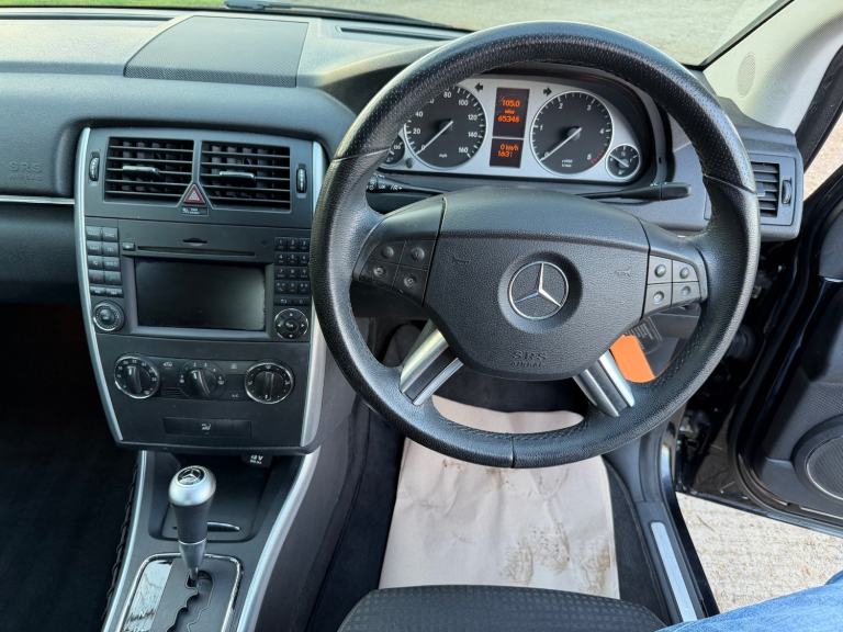 Here we have a very rare example of the Mercedes B200 Sport CDI Automatic first registered 16th November 2010 and only 2 former owners. In black with grey half leather interior both in beautiful condition. Nice AMG alloys and excellent tyres. Sat Nav. Aircon Climate control. Mercedes Media System. Bluetooth. Rear parcel shelf. 2 keys. Full service history having been regularly serviced with all the invoices to evidence. Last service at 63087 miles. Brand new MOT with no advisories. Drives beautifully. Great value for money as it is priced well below any comparable on the Net today