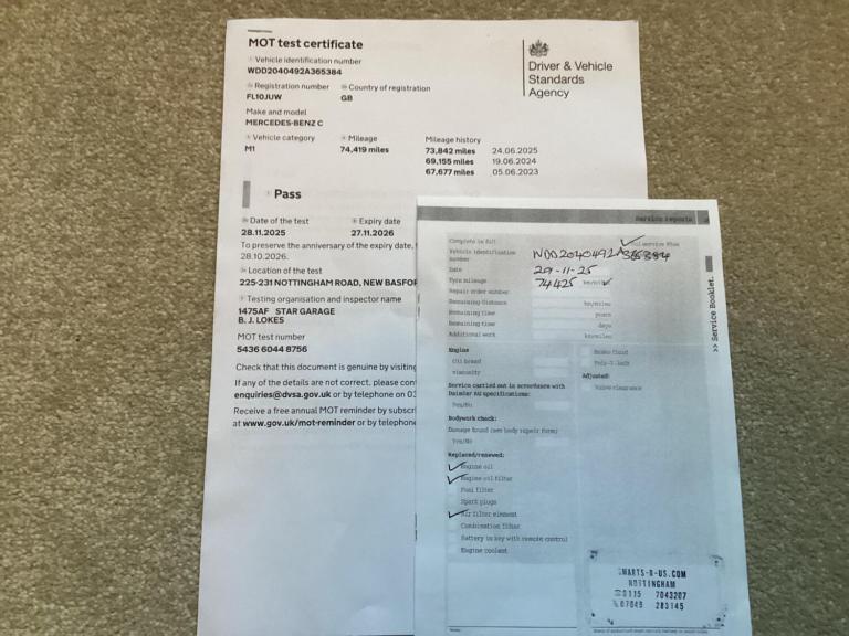 Eleven main dealer stamps with all the paperwork.The car has had a new mot 27/11/2026 no advisories. New service. Wheels have been professionally refurbished.Six months Momentum warranty with free breakdown recovery. Full book pack and two keys. Space saver spare wheel never used with a complete tool kit. Amazing paperwork all Mercedes 4000 spent in 2023 alone. Please read my Autotrader reviews and buy with confidence.