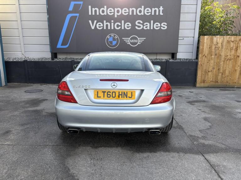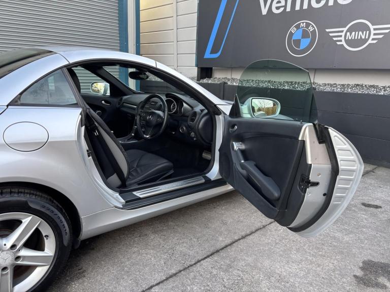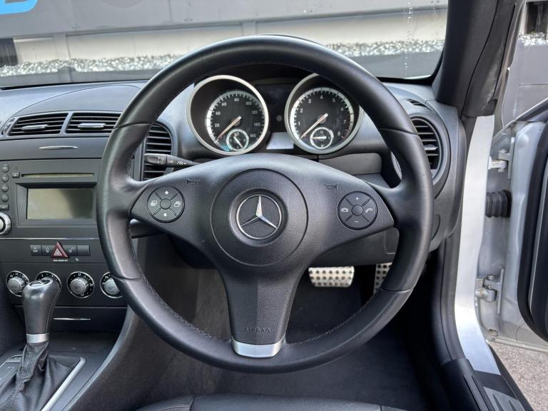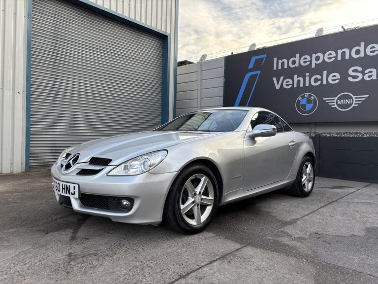 Mercedes-Benz SLK 1.8 SLK200K Convertible Tiptronic (184 PS) – 2010 – 44,000 Miles – Excellent Condition This stunning 2010 Mercedes-Benz SLK200K Convertible is presented in excellent condition throughout, having covered just 44,000 miles from new. Powered by a smooth and responsive 1.8-litre supercharged petrol engine paired with a Tiptronic automatic transmission, it delivers an enjoyable and sporty drive with 184 PS on tap. The vehicle has been fully prepared by our onsite technicians, including a fresh service, full multipoint inspection, and MOT for complete peace of mind. It comes with two keys and an excellent service history. We welcome part exchanges, regardless of condition. Out-of-hours viewings are available by appointment.Please also take a moment to check our 5-star Autotrader reviews—rated Excellent for Customer Service 2025. For more information or to arrange a viewing, please feel free to give us a call—we’re always happy to help. Vehicle Overview Year: 2010 Mileage: 44,000 miles Fuel Type: Petrol Transmission: Automatic (Tiptronic) Body Style: 2-door Convertible Power: 184 PS (181 bhp) Performance & Economy Top Speed: 144 mph 0–62 mph: 7.9 seconds Engine Torque: 250 Nm Combined MPG: 34.9 mpg CO2 Emissions: 192 g/km Emission Class: Euro 4 Engine & Drivetrain Engine Capacity: 1.8L (1,796 cc) Cylinders: 4 (Inline) Valves: 16 Fuel Delivery: Supercharged Transmission: 5-speed Tiptronic Automatic Drive Type: Rear-Wheel Drive Dimensions & Weight Length: 4,103 mm Height: 1,296 mm Width: 2,012 mm Wheelbase: 2,430 mm Doors: 2 Seats: 2