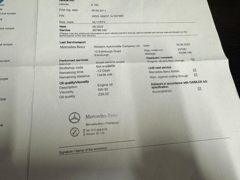 Posting for 11+ years2011 Mercedes-Benz A-Class A160 Classic SE 5dr CVT Auto HATCHBACK Petrol Automatic