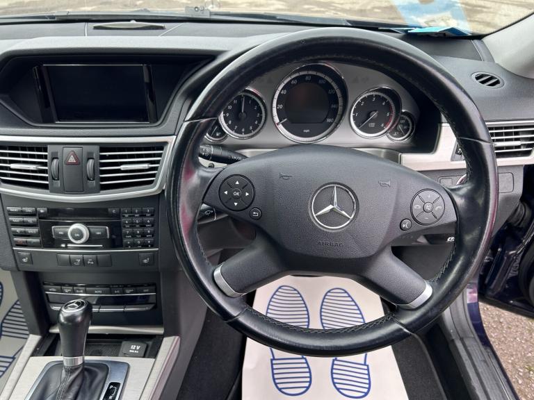 Mercedes-benz E Class 2.1 E220 CDI BlueEfficiency Avantgarde finished in Blue (Auto), 96553 miles. This car comes with a Full Service History. Only £4,995 Stowage compartment with 12V socket 8 Speakers Audio 20 Radio & CD & MP3 player with 5in colour screen Bluetooth interface for Handsfree telephone Tyre pressure warning 17in 10 Twin Spoke Alloy Wheels 17in 5 Twin Spoke Alloy Wheels Model designation deletion Partial Electric Front Seats & backrest & height adjust Auto dual- zone Climate Control System Black Ash Interior Trim Drivers lumbar support Heated Front Seats Lowered suspension Comfort suspension