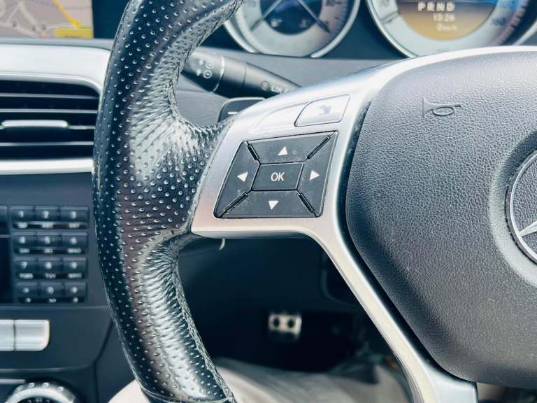 18in Alloy Wheels - AMG 7 Spoke Design, ABS - Anti-Lock Braking System, ASR - Acceleration Skid Control, ATTENTION Assist, Active Light System, Agility Control - Sports Suspension with Adaptive Damping System, Agility Control Suspension with Adaptive Damping System, Airbags - Dual Stage - Driver, Airbags - Dual Stage - Front Passenger, Airbags - Front Sidebags, Airbags - Kneebag, Airbags - Window, Alarm System with Immobiliser and Interior Protection, Automatic Child Seat Recognition Sensor, Automatic Climate Control - Two-Zone-Independently Adjustable for Driver and Passenger, Automatically Dimming Rear View Mirror and Folding Exterior Door Mirrors, AUX-IN Socket, BAS - Brake Assist, Bluetooth Interface for Hands-Free Telephone, CD-Radio, COMAND Online System with Integrated 6CD Changer, COMAND Online System with Media Interface, Centre Armrest - Front, Centre Armrest - Front with Storage, Cruise Control, Cup Holder, Daytime Running Lights - LED, Door Mirrors - Electrically Adjustable and Heated with LED Indicators, Door Mirrors - Electrically Folding, ESP - Electronic Stability Programme, Electric Windows - Front and Rear, First Aid Kit and Warning Triangle, Front Seats - Electrical Height and Backrest Adjustment, Headlight Wash System, Headlights - Adaptive High Beam Assist, Headlights - Bi Xenon, Headlights - Cornering Light Function, ISOFIX Child Seat Fixing Points in Rear, Intelligent Light System, Lumbar Support, Parktronic - Front with Advanced Parking Guidance, Parktronic - Rear with Advanced Parking Guidance, Power Assisted Steering, Rain Sensing Windscreen Wipers, Remote Central Locking, Spare Wheel - Space Saver, Steering Column - Manually Adjustable for Height and Reach, Steering Wheel - AMG 3-Spoke Nappa Leather, Steering Wheel - Gear Shift Paddles, Steering Wheel - Multi-function-12-Button-Controls Audio and Onboard Settings, Storage Package, Tinted, Trim - Brushed Aluminium, Tyre Pressure Loss Warning System