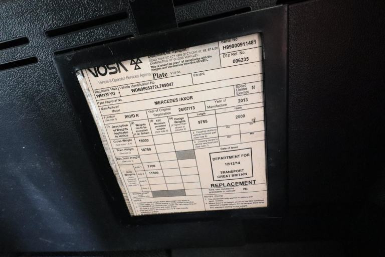 2013 (13 PLATE) MERCEDES BENZ AXOR 1823 4X2 EURO 6 FRIGOBLOCK REFRIGERATED RIGID BOX TRUCK, MOTORIZED DHOLLANDIA TUCKAWAY TAIL LIFT, CAMERA SYSTEM, EXTERIOR GAUGES, FRIGOBLOCK FRIDGE BOX, AIR DEFLECTOR KIT, RADIO/STEREO, DIGITAL TACHOGRAPH, 3-PEDAL, PRICE IS POA