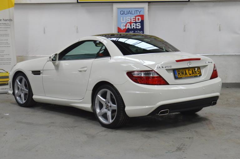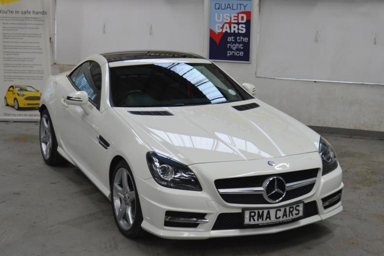 MERCEDES-BENZ SLK250 2.1 CDI BlueEFFICIENCY AMG SPORT 2dr CONVERTIBLE. AN ABSOLUTELY FABULOUS EXAMPLE WHICH LOOKS AND DRIVES LIKE NEW. THERE IS NOT A MARK ON IT INSIDE OR OUT, IT HAS CLEARLY BEEN SUPERBLY MAINTAINED BY THE PREVIOUS OWNERS. WITH A SUPPORTING AND COMPREHENSIVE SERVICE HISTORY THIS AUTOMATIC MODEL OFFERS STYLE, COMFORT AND POWER IN ABUNDANCE. THE ELECTRO VARIO HARDTOP WORKS SEAMLESSLY THROUGH THE SIMPLE PUSH OF A BUTTON AND THE DIESEL ENGINE PROVIDES EXCELLENT FUEL ECONOMY. SOME OF THE CARS OTHER FEATURES INCLUDE COLOUR CODED BUMPERS AND MIRRORS, 18 INCH AMG ALLOY WHEELS, AMG BODYSTYLING, LED DAYTIME RUNNING LIGHTS, REAR PARK ASSIST, WIND DEFLECTOR, BLACK LEATHER HEATED SPORTS SEATS WITH CONTRASTING RED STITCH, MULTI-FUNCTIONAL STEERING WHEEL WITH GEARSHIFT PADDLES, CRUISE CONTROL AND SPEED LIMITED, COLOUR SCREEN, BLUETOOTH TELEPHONE CONNECTIVITY, CD/DAB RADIO, MIRRORLINK TO ALLOW SEAMLESS TRANSITION OF MOBILE PHONE APPS TO THE SYSTEM SUCH AS GOOGLE MAPS FOR NAVIGATION PURPOSES, SONG AND CONTACTS LIST ETC, CLIMATE CONTROL, AIR CONDITIONING, ELECTRIC WINDOWS AND MIRRORS, CENTRE CONSOLE CUP HOLDERS, SPACE SAVER SPARE WHEEL, REMOTE CENTRAL LOCKING AND 2 x KEYS. THIS IS A REAL MUST SEE, A SUPERB LOW MILEAGE AUTOMATIC CONVERTIBLE. AS WE ARE AN AA CARS DEALER THIS VEHICLE COMES WITH A FULL AA HISTORY CHECK AND ALSO 12 MONTHS AA BREAKDOWN COVER. EXTENDED AA WARRANTY AVAILABLE. WE ARE ALSO A MEMBER OF THE AA DEALER PROMISE SCHEME. NEW MOT ISSUED ON PURCHASE. WE PRIDE OURSELVES ON THE PRESENTATION OF OUR VEHICLES WHICH ARE FULLY VALETED AND PREPARED TO THE VERY HIGHEST OF STANDARDS. AS A RESULT WE FIRMLY BELIEVE THAT OUR FORECOURT IS UNRIVALLED AND OUR REPUTATION FOR SELLING PREMIUM USED CARS IS SECOND TO NONE. WALK AROUND VIDEO AND DELIVERY OPTIONS ARE AVAILABLE UPON REQUEST.