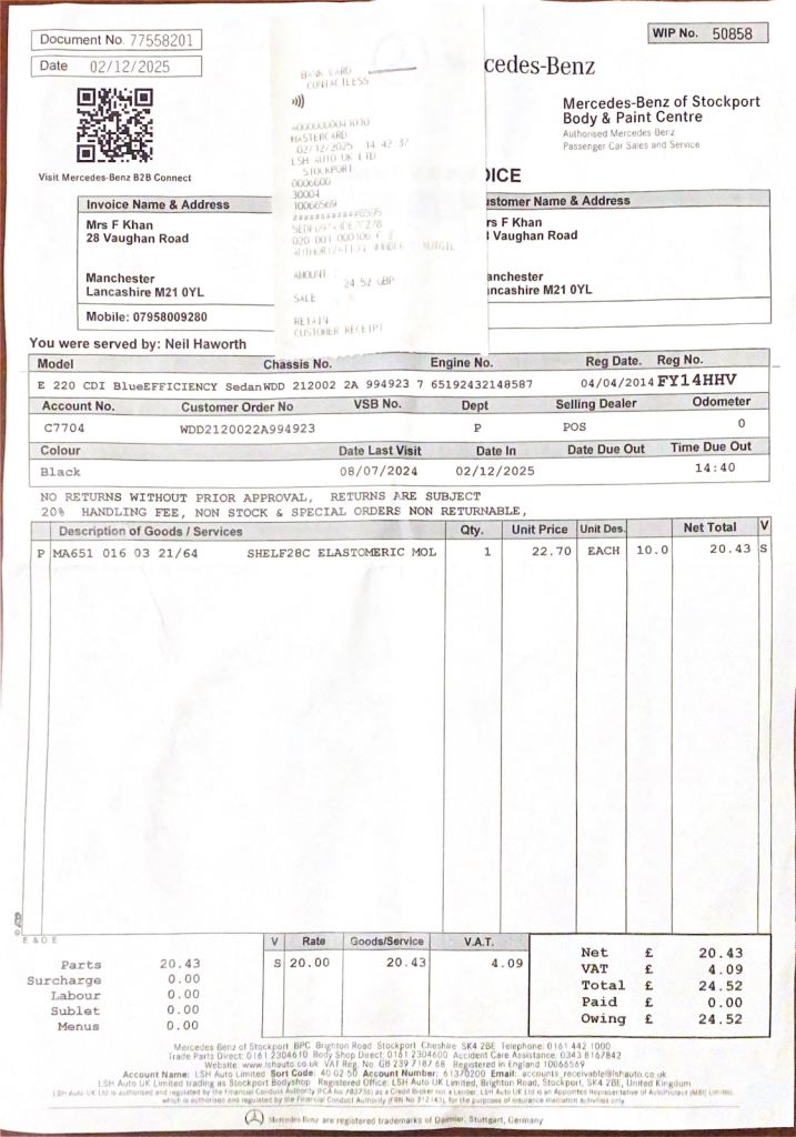 DPF Cleared June 2025 (by carbon centre UK - Sale M33 6JN) Receipt in pictures