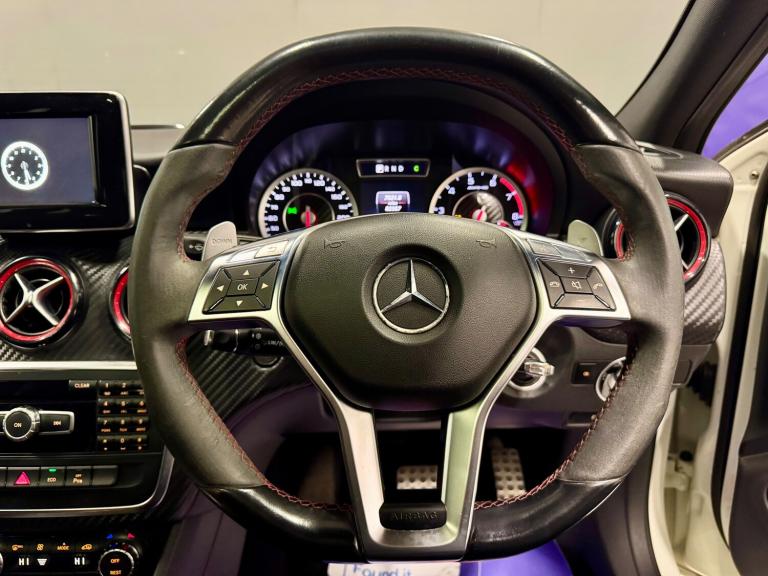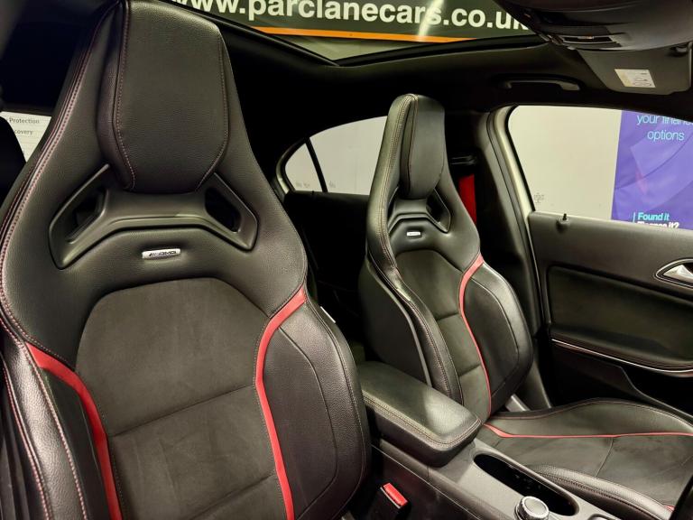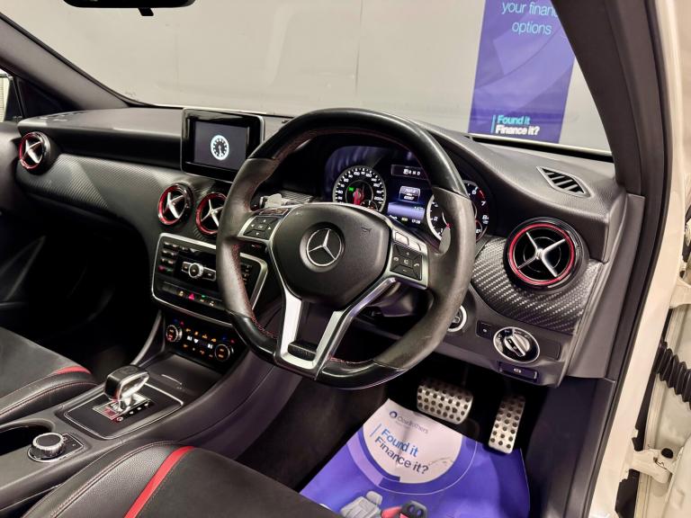 PARC LANE CARS OF GOSFORTH PRESENT THIS BEAUTIFUL MERCEDES BENZ A45 AMG 4MATIC AUTOMATIC. FINISHED IN CIRRUS WHITE GLOSS WITH STUNNING ARTICO LEATHER/MICROFIBRE BUCKET SPORT AMG INTERIOR TRIM WITH RED DETAILING AND STITCHING! THIS A45 HAS COVERED ONLY 82000 MILES AND COMES WITH A COMPREHENSIVE PRINTED SERVICE HISTORY. FITTED WITH THE FOLLOWING FACTORY EXTRAS; Memory Package Panoramic sliding sunroof AMG Performance steering wheel in nappa leather/Alcantara Inteligent Light System Black - Artico artificial leather/Dinamica microfibre Cirrus White gloss THIS CAR IS SIMPLY STUNNING AND IS NOT TO BE MISSED!! FINANCE IS AVAILABLE AND PART EXCHANGE IS WELCOME REG NO. YD64GYX ** LISTED SPECIFICATION IS SHOWN AS ACCURATELY AS POSSIBLE. ERRORS MAY OCCUR. PLEASE ASK US TO CLARIFY IF YOU HAVE ANY QUERIES. ** Features Include: , 18in alloy wheels - 5-twin-spoke design, amg bodystyling - front apron with splitter in high gloss black, amg bodystyling - rear apron with trim strip in high gloss black, amg bodystyling - side sill panels with inserts in high gloss black, amg radiator grille with twin louvre, beltline strips - black, bumpers - body-coloured, door handles - body-coloured, door mirror housings - high gloss black, door mirrors - electrically adjustable and heated, door mirrors - integrated led indicators, exhaust system - amg sports with black-chrome plated tailpipes, heated rear window with timer control, privacy glass, side skirts - body-coloured, tirefit tyre-sealant kit, windows - electric x4, 5.8-inch tablet-style colour display, amg instrument cluster with colour display and amg menu, audio 20 radio-cd, bluetooth, dab digital radio tuner, media interface, pre-wiring for becker map pilot navigation system, radio aerial roof spoiler, speakers x6, telephone keypad, usb port, abs - anti-lock braking system, asr - acceleration skid control, active bonnet - pedestrian safety measure which detects an impact and raises bonnet by 65mm, adaptive brake assist with hold function and hill start assist, adaptive brake lights, airbag - drivers knee, airbag - dual-stage - front passenger, airbags - dual-stage - driver, airbags - head for driver and front passenger, airbags - windowbags for driver and front passenger, alarm system with interior protection, automatic child seat recognition sensor, bas - brake assist, childproof locks - manually operated for rear doors and electrically operated for rear power windows, collision prevention assist,