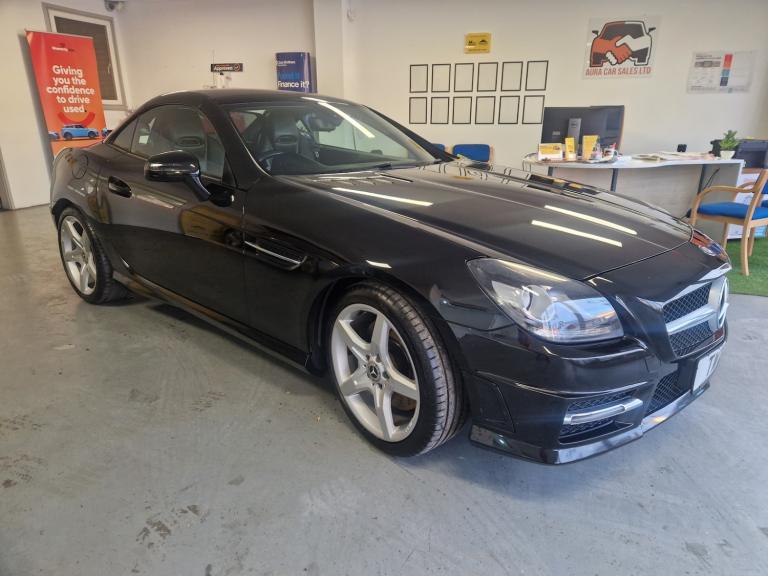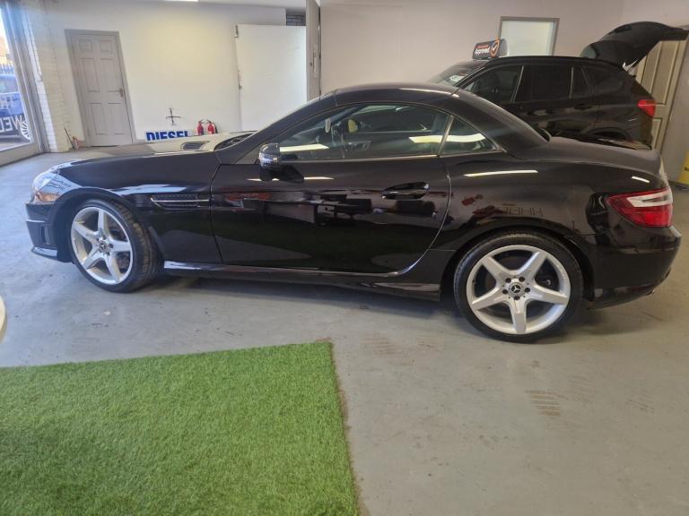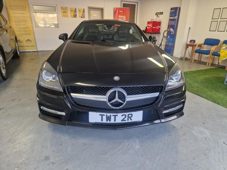 Direct part exchange from a main Mercedes Dealership is This 2014 Mercedes Benz SLK200 AMG Sport offers a superb blend of performance and efficiency, making it a standout choice for discerning drivers. Featuring a responsive 1.8L petrol engine and the desirable AMG Sport trim, this model is equipped with a Bluetooth interface for hands free telephone calls, ensuring you stay connected safely. Comfort is further enhanced by air conditioning, and the Headlamp Assist automatically activates the headlights, providing convenience and improved visibility in varying light conditions.++++++++The car has got a comprehensive service history with a massive history file, no expense spared, definitely been a pride and joy.++++++++Excellent spec with 5 spoke AMG alloys, full black leather interior which is heated, warm air neck scarf, as per photos it is in super condition for the age , real head turner, mirror finish gloss black paintwork with unmarked interior.++++++++With an impressive fuel economy of 44 mpg, this SLK200 AMG Sport demonstrates its efficiency, a key advantage over many similar vehicles. Its low CO2 emissions also contribute to its appeal, highlighting its more environmentally conscious design. This Mercedes Benz SLK represents a compelling package of sporty styling, advanced technology, and economical running costs.++++++++Buy with confidence as we are both an AA approved dealership as well as trading standards approved.++++++++Will come with 12 months nationwide warranty thro warranty wise, along with 12 months AA roadside assistance.++++++++Finance is available along with nationwide delivery and indoor viewing.PRIVATE PLATE NOT WITH THE CAR.