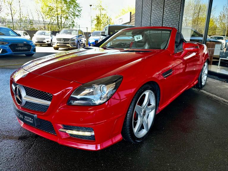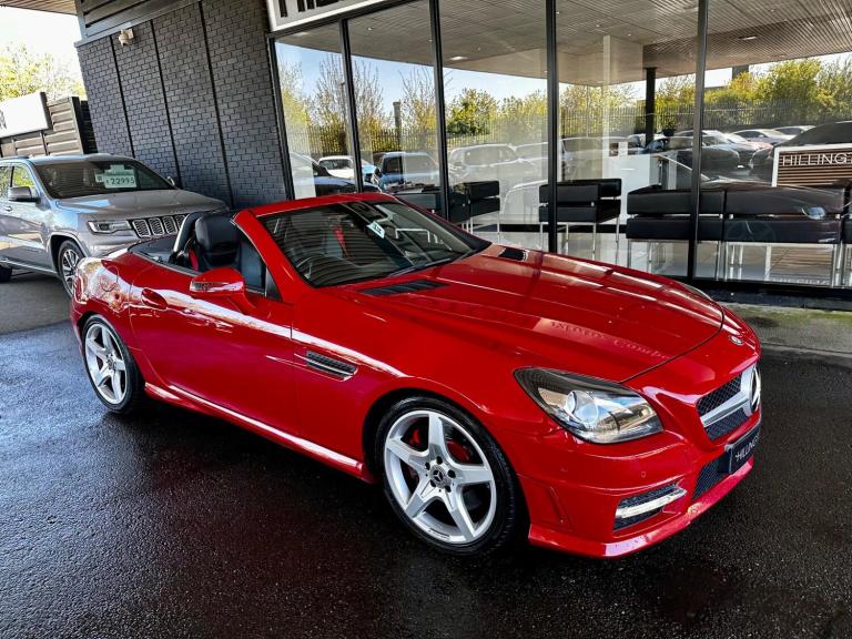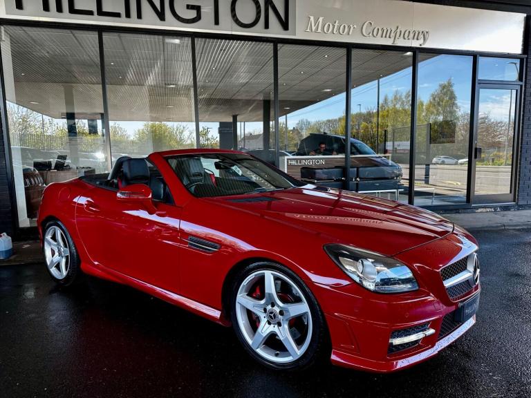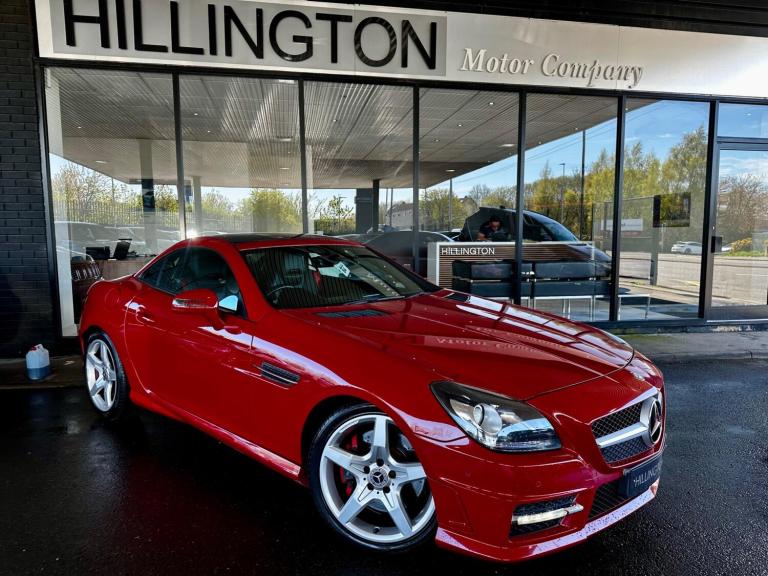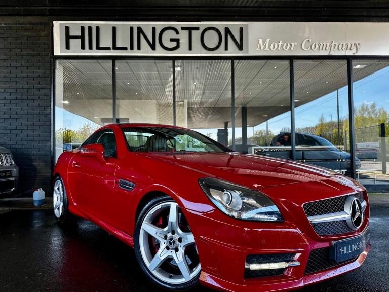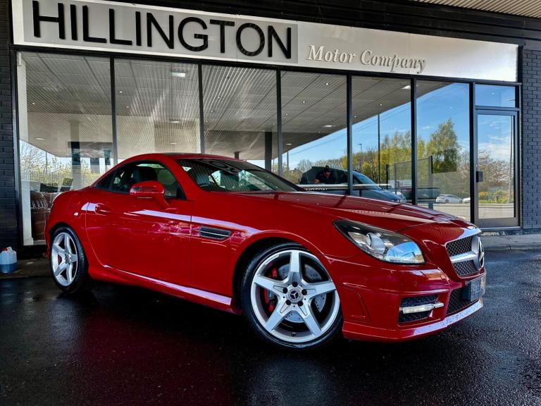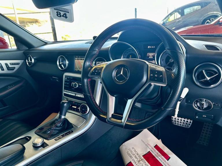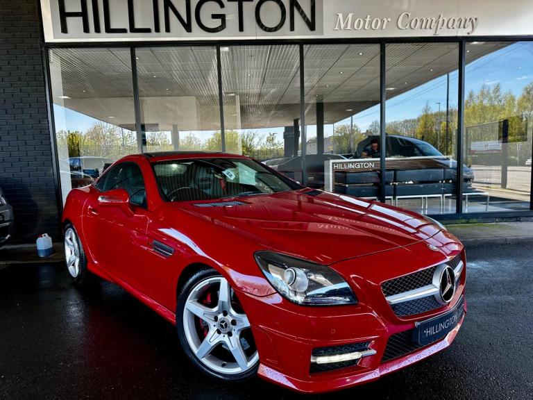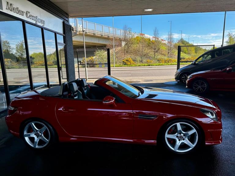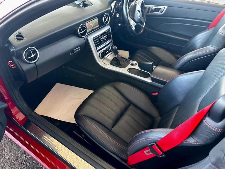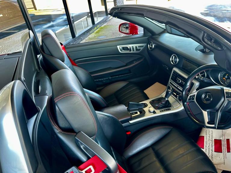 THIS IS A LOVELY EXAMPLE OF A MERCEDES SLK 250 AMG SPORT IN FIRE OPAL RED WITH FULL BLACK LEATHER WITH RED SEAT BELTS. THIS MERCEDES SLK GOT TRADED INTO US AND IT HAS A FULLY DOCUMENTED SERVICE HISTORY WITH EVERY RECEIPT LAST CARRIED OUT AT 74371 MILES PREVIOUSLY 66419, 48433, 37401, 34601, 23322, 11931. ELECTRIC PANORAMIC SUNROOF, LEATHER SPORTS MULTIFUNCTION STEERING WHEEL WITH CRUISE CONTROL AND PADDLE SHIFT, NECK SCARF, HEATED ELECTRIC SEATS, SAT NAV+BLUETOOTH, DUAL CLIMATE CONTROL, AIR CON, 18''AMG ALLOYS, AMG SPORT STYLING, FRONT FOG LIGHTS, REMOTE CENTRAL LOCKING. ALL OF OUR CARS COME AVAILABLE WITH RAC PLATINIUM WARRANTY WITH NATIONWIDE COVER