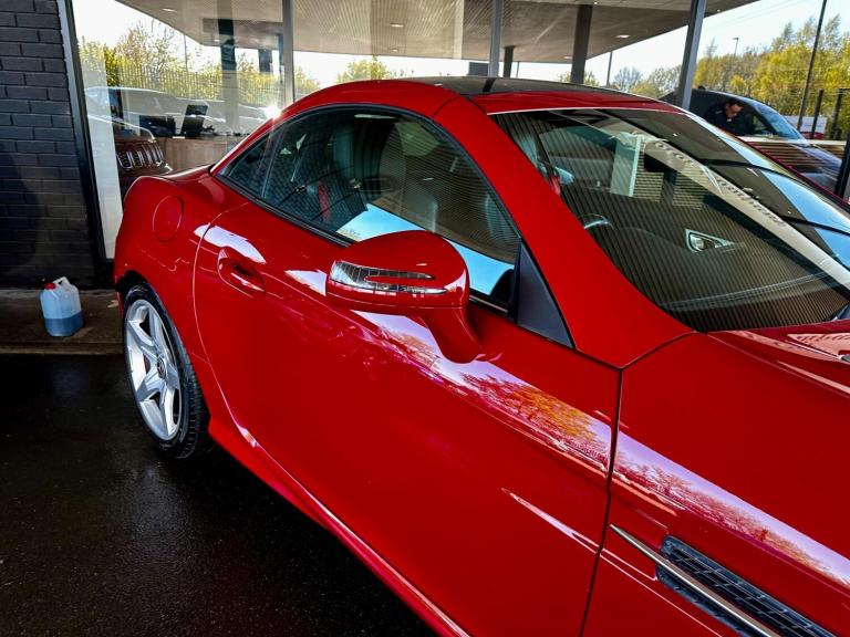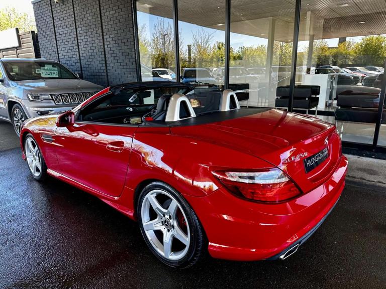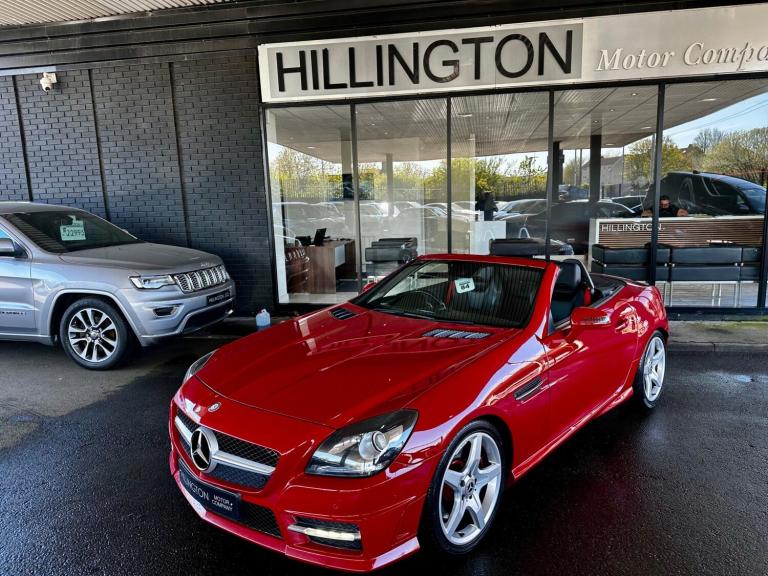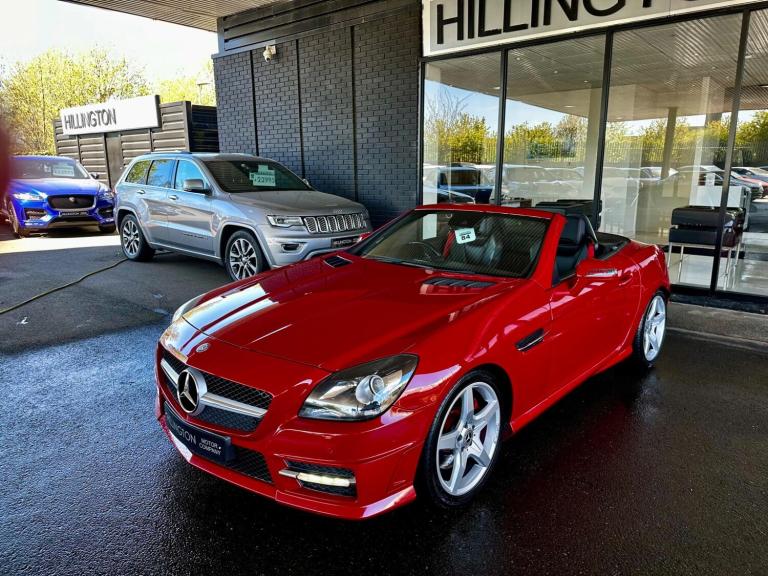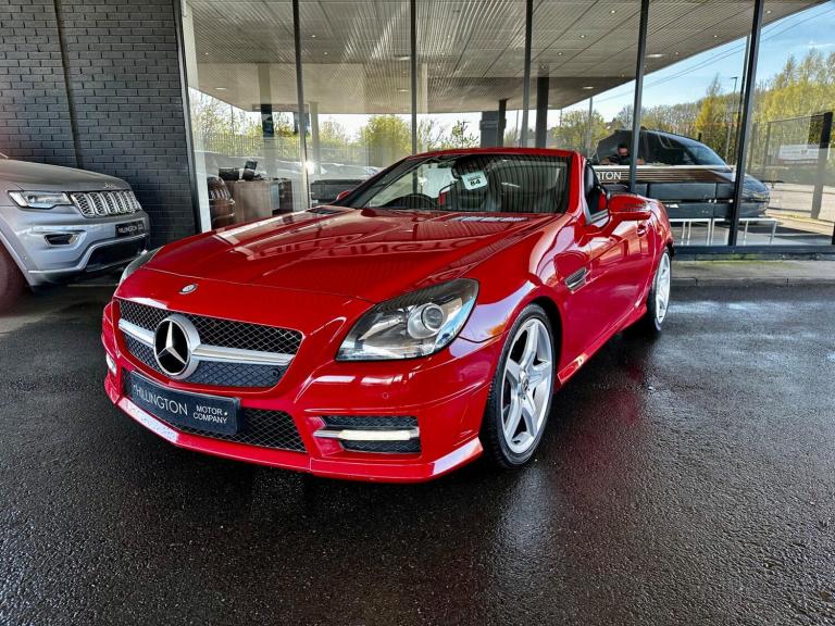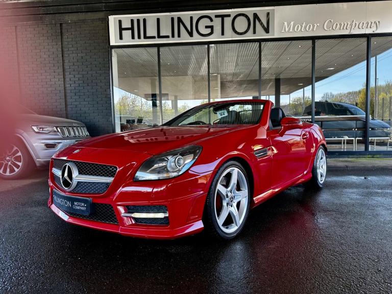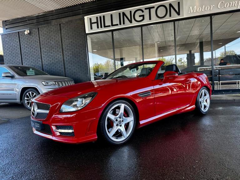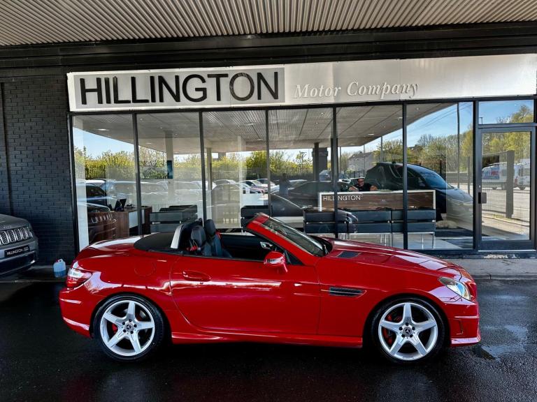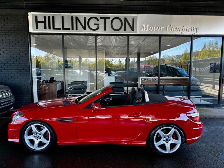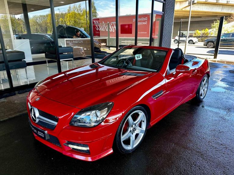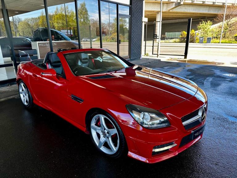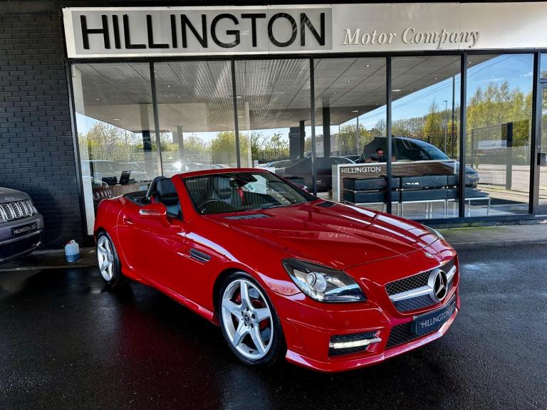 THIS IS A LOVELY EXAMPLE OF A MERCEDES SLK 250 AMG SPORT IN FIRE OPAL RED WITH FULL BLACK LEATHER WITH RED SEAT BELTS. THIS MERCEDES SLK GOT TRADED INTO US AND IT HAS A FULLY DOCUMENTED SERVICE HISTORY WITH EVERY RECEIPT LAST CARRIED OUT AT 74371 MILES PREVIOUSLY 66419, 48433, 37401, 34601, 23322, 11931. ELECTRIC PANORAMIC SUNROOF, LEATHER SPORTS MULTIFUNCTION STEERING WHEEL WITH CRUISE CONTROL AND PADDLE SHIFT, NECK SCARF, HEATED ELECTRIC SEATS, SAT NAV+BLUETOOTH, DUAL CLIMATE CONTROL, AIR CON, 18''AMG ALLOYS, AMG SPORT STYLING, FRONT FOG LIGHTS, REMOTE CENTRAL LOCKING. ALL OF OUR CARS COME AVAILABLE WITH RAC PLATINIUM WARRANTY WITH NATIONWIDE COVER