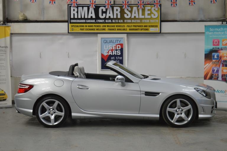 MERCEDEZ-BENZ 2.1 SLK250 CDI AMG SPORT 2dr AUTOMATIC CONVERTIBLE. AN OUTSTANDING EXAMPLE IN SILVER WITH JUST 30000 MILES ON THE CLOCK. OFFERING STYLE, POWER, COMFORT AND EXCELLENT ECONOMY THIS IS AN ABSOLUTE PLEASURE TO DRIVE. IT COMES WITH A COMPREHENSIVE SERVICE HISTORY TO INCLUDE A RECENT SERVICE. THIS PARTICULAR MODEL COMES WITH A GLASS ROOF AND HAS CLEARLY BEEN WELL MAINTAINED BY ITS PREVIOUS OWNERS AS IT IS IN PRISTINE CONDITION INSIDE AND OUT. SOME OF THE OTHER MAIN FEATURES INCLUDE ELECTRONIC STABILITY PROGRAMME WITH ACCELERATION SKID CONTROL, ADAPATIVE BRAKE SYSTEM, AMG BODYSTYLING, COLOUR CODED BUMPERS AND MIRRORS, DAYTIME RUNNING LIGHTS, UNMARKED 5 SPOKE ALLOY WHEELS, FRONT AND REAR PARK ASSIST, ELECTRONIC PARKING BRAKE, CREAM LEATHER HEATED SEATS WITH AIR SCARF, MULTI-FUNCTIONAL STEERING WHEEL WITH PADDLESHIFT, ECONOMY/SPORT DRIVING MODES, ELECTRONIC RETRACTABLE GLASS HARD TOP, BLUETOOTH TELEPHONE CONNECTION AND VOICE COMMANDS, CD/DAB RADIO, AUX/USB SOCKETS, SATELLITE NAVIGATION, CRUISE CONTROL AND SPEED LIMITER, AIR CONDITIONING, AIR CONDITIONING, WIND DEFLECTOR, CENTRE CONSOLE STORAGE AND CUP HOLDERS, ELECTRIC WINDOWS AND POWERFOLD MIRRORS, REMOTE CENTRAL LOCKING, SPARE WHEEL AND 2 x KEYS. AS GOOD AS THEY COME, YOU WILL STRUGGLE TO FIND SIMILAR IN SUCH GREAT CONDITION. AS WE ARE AN AA CARS DEALER THIS VEHICLE COMES WITH A FULL AA HISTORY CHECK AND ALSO 12 MONTHS AA BREAKDOWN COVER. EXTENDED AA WARRANTY AVAILABLE. WE ARE ALSO A MEMBER OF THE AA DEALER PROMISE SCHEME. NEW MOT ISSUED ON PURCHASE. ALL OUR VEHICLES ARE FULLY VALETED. WALK AROUND VIDEO AND DELIVERY OPTIONS ARE AVAILABLE UPON REQUEST.