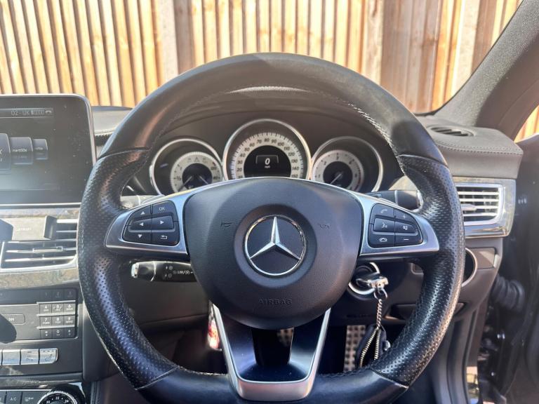Presented in beautiful condition, this 2015 Mercedes-Benz CLS220 AMG Line combines sleek design with efficient performance. This car comes with a 2.1L diesel engine and boasts low mileage of just 66,400 miles. The vehicle is further enhanced by the AMG Line trim and a Premium Package, which includes an electric sunroof, parking assistance with a rear camera, and memory seats. The interior is refined with black piano lacquer trim, heated front seats, and the added convenience of speed limit assist. The advanced LED Intelligent Light System ensures optimal visibility, making every journey a pleasure. This CLS comes with a clear vehicle history check and partial service history, offering peace of mind. It also benefits from a fresh 12 months MOT provided on purchase. The Euro 6 emission class means it meets stringent environmental standards. The premium package, low mileage and excellent condition make this vehicle a compelling option in its class. Features Include: , immobiliser, remote central locking, trip computer, heated front seats, hill start assist, tyre pressure monitoring system, alarm system with interior protection, high level third brake light, brake pad wear indicator, locking wheel bolts, attention assist, adaptive brake system, pre-safe anticipatory safety system, analogue clock, first aid kit, warning triangle, collision prevention assist plus, brushed stainless steel sports pedals with rubber studs, speed limit assist, dab digital radio tuner, automatic child seat recognition sensor, cruise control with speedtronic variable speed limiter, rain sensing windscreen wipers, radio aerial integrated into rear window, isofix child seat attachment points with top tether in rear, automatically dimming rear view mirror, tirefit with tyre inflation compressor, sun visors with illuminated vanity mirrors, heated windscreen washer system, brake calipers with mercedes-benz lettering, esp - electronic stability programme, abs - anti-lock braking system, airbags - front sidebags, parking sensor - rear, tinted glass all round - green, asr - acceleration skid control, active park assist with parktronic, airbags - dual stage - front passenger, door mirrors - drivers automatically dimming, enhanced foglight system, front seats - electrical height and backrest adjustment, headlights - led, mercedes me connect, mirror package, parking sensor - front, power steering - direct steer system with speed sensitive, trim - black ash wood, usb ports in centre console x2,