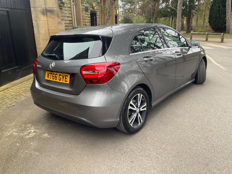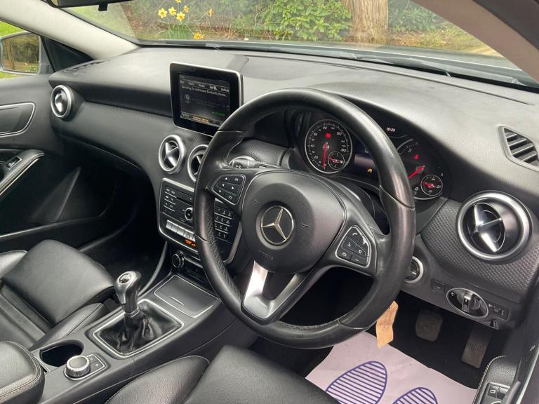 Here we have this lovely 2016 Mercedes Benz A180d 1.5 Cdi SE Executive 5 door Hatch in Steel Grey Metallic, Complimented with Full Heated Black Leather trim. 90,239 Genuine miles, 4 Previous Owners, Looks & drives superb, excellent original condition throughout. Fantastic Specification including 6 Speed Manual Gearbox, Trip Computer, A/C, Radio Cd Stereo, Bluetooth handsfree, Bluetooth Music, Electric Windows x4, Sat Nav, Rear Reversing Camera, Remote Central Locking alarm immobiliser, Colour Coded bumpers, Alloys, Front & Rear Parking Sensors, Cruise Control, Chunky leather Steering Wheel. MOT expires 22nd March 2027. £20 Per Year Road Tax, Fantastic performance & Fuel economy averaging between 72.4 - 88.3 MPG. Insurance Group 13E. Usual German Mercedes Build Quality & Reliability, Excellent Family Car. Viewing & Test drive is highly recommended, as this is in superb condition, For the fastest response or more information, please contact us on Whatsapp: 07572 413 333. Apply for finance: [Website URL removed] - Reserve for £99, , UK Wide delivery is available, with free delivery within 40 miles. Additional pictures can be found on our website at: [Website URL removed]. We offer a range of services including finance options, accepting debit and credit cards, bank transfers, MOTs, part exchanges, delivery and collection, finance settlements, and Hpi reports. There are several reasons to buy from us, including being an AA trusted dealer, having 5-star Auto Trader reviews, offering click and collect, welcoming AA and RAC inspections, considering good or poor credit history for finance options, providing same day drive away, and offering 12 months of free AA breakdown cover. Our location is at Cheadle Car Sales Ltd, Unit 8, Brookfield Road, Stockport, SK8 2PN. To apply for finance, please visit: [Website URL removed] really