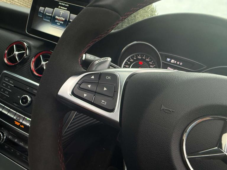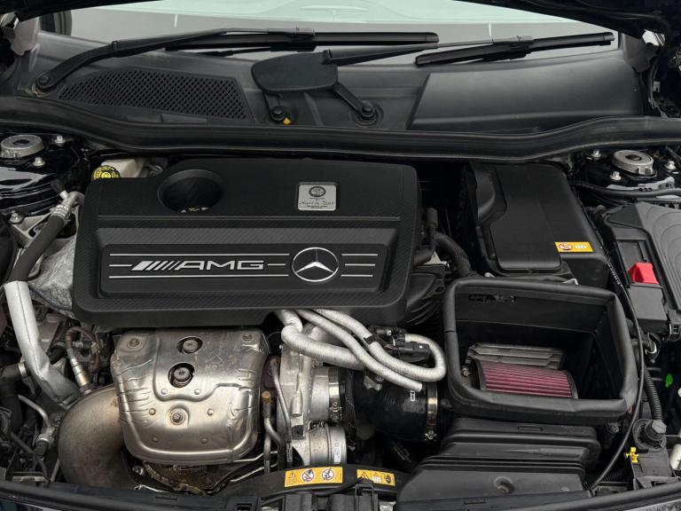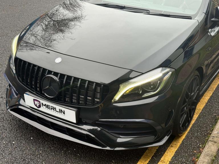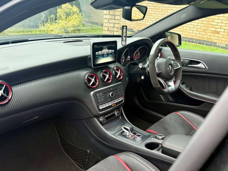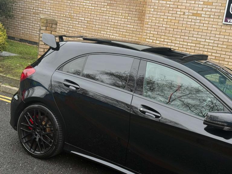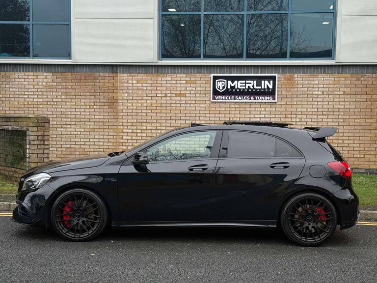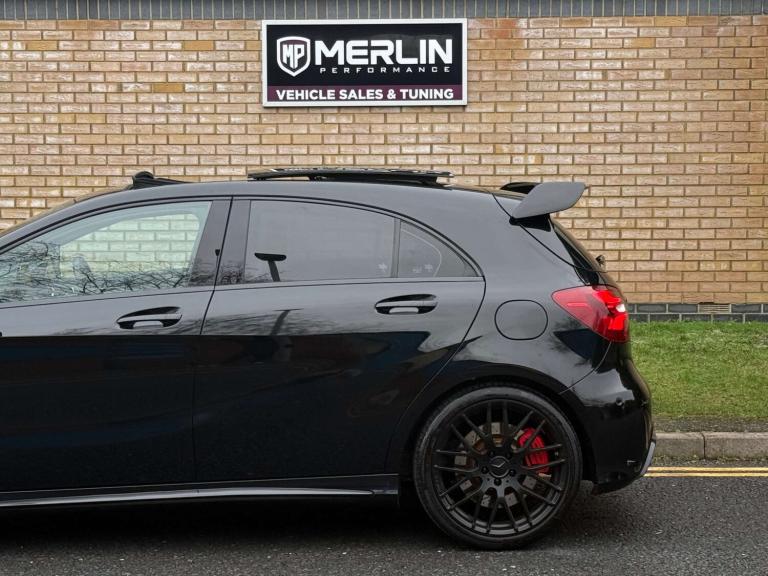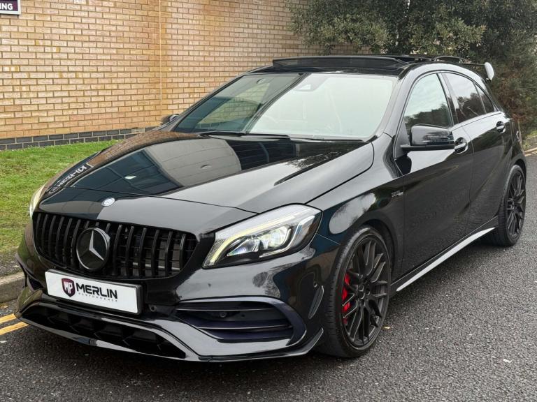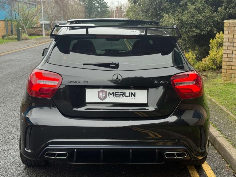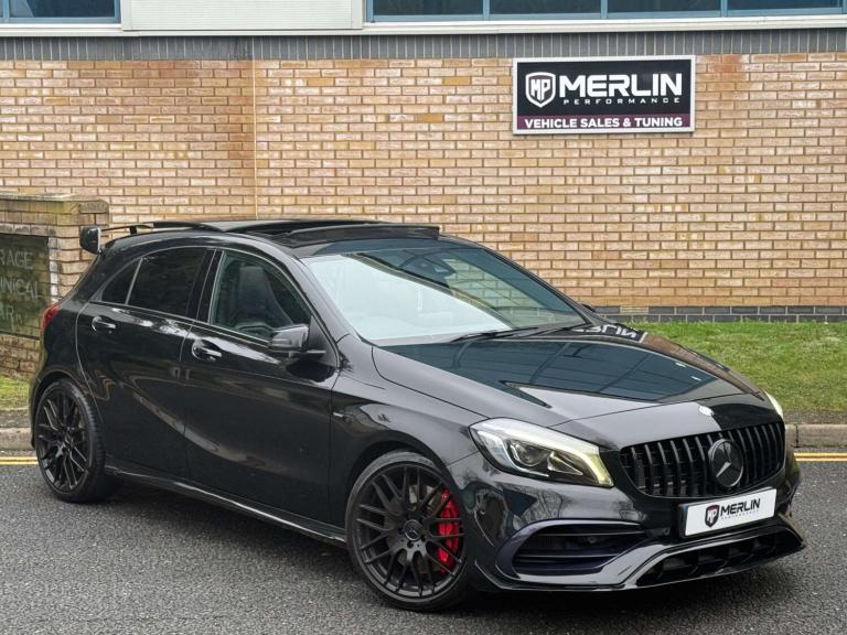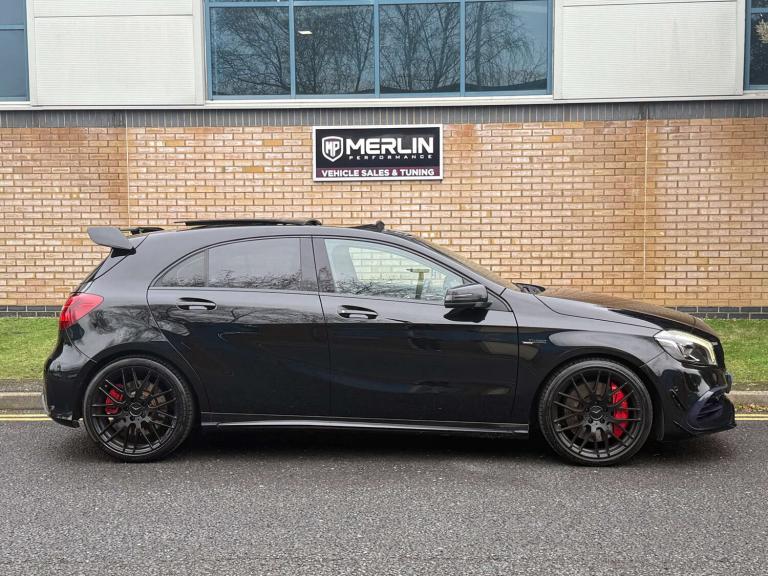 We are delighted to bring to market this stunning Cosmos Black A45 AMG with just 13k miles from new and backed by a full service history and an extensive specification. This car is a true enthusiast owned example in immaculate condition throughout. The specification includes; Aero pack, Panoramic tilt and slide sunroof, sports exhaust, Harman Kardon sound system, keyless entry, reverse camera, bigger infotainment screen, front and rear sensors, Bluetooth, folding mirrors, heated seats, black pack and more.... This car also comes with 4 services, brake fluid change and gearbox service! This has to be the lowest mileage example on the market, with a great specification and extensive history its the one to have! The only modification made is a Ram Air intake for better breathing, this may add 10 bhp or so. The car is not tuned! This has to be one of the last chances to own a sub 15k mile A45 of this shape currently, if of interest please reach out to us and we would be delighted to assist.At Merlin Performance we offer a handpicked variety of performance and prestige vehicles, each carefully selected for their rare specification and excellent condition. Unlike other dealerships, we don’t buy our vehicles from auctions. All of our stock is specifically selected, inspected and collected by our passionate team of performance car specialists!All vehicles pass through our 99-point workshop and HPI check, come with a complimentary 6-month nationwide warranty (with options to extend) along with a full service history, two keys and book packs where available. In addition to this, all of our VW/Audi/Porsche vehicles are inspected with VCDS to verify the gearbox mileage against the ECU mileage to ensure no mileage tampering has occurred, as these performance cars are unfortunately common targets for mileage blockers. We're always happy to provide evidence of this. All of these checks provide confidence for our buyers that our cars are genuine, excellent examples. Full walk around videos available on request.Please note, vehicle specification information is provided in good faith but may occasionally be inaccurate. Buyers are advised to confirm all features and specification details with Merlin Performance prior to purchase or collection.Thank you for your interest.