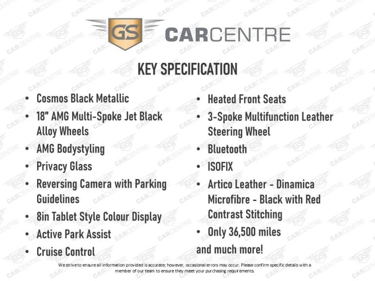 GS Car Centre are excited to bring to market this stunning Mercedes-Benz A Class 2.1 A200d AMG Line (Premium) 7G-DCT Euro 6. Please see below some of the key features, service, warranty and finance information;Key Specifications:- Cosmos Black Metallic- 18in AMG Multi-Spoke Jet Black Alloy Wheels- AMG Bodystyling- Artico Leather - Dinamica Microfibre - Black with Red Contrast Stitching- Privacy Glass- Reversing Camera with Parking Guidelines- 8in Tablet Style Colour Display- Active Park Assist- Cruise Control- Heated Front Seats- 3-Spoke Multifunction Leather Steering Wheel- Bluetooth- ISOFIX- Only 36,500 milesService History:- 6 Services (5 Independent - 1 to be added)Warranty:- 3 months as standard- 1 year warranty £598, £5,000 per claim, unlimited claims- 2 year warranty £998, £5,000 per claim, unlimited claims- 3 year warranty £1198, £5,000 per claim, unlimited claimsFinance:- Finance available from 9.9% APRKeys: 2Registration: DF66 CFJ