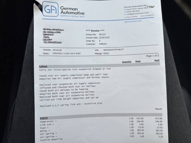 .17in Alloy Wheels - 5 Twin-Spoke Design, 7in Colour Display - High-Resolution, ABS - Anti-Lock Braking System, AIRMATIC Dynamic Handling Package, ASR - Acceleration Skid Control, ATTENTION Assist, Active Bonnet - Pedestrian Safety which Detects an Impact and Raises Bonnet, Active Park Assist with Parktronic, Adaptive Brake Lamps, Adaptive Brake System with Hold Function and Brake Drying Function, AirMATIC Suspension, Airbags - Drivers Kneebag, Airbags - Dual Stage - Front Passenger, Airbags - Dual Stage - Side in Front Seats, Airbags - Dual-Stage - Driver, Airbags - Pelvisbag, Alarm System with Immobiliser and Interior Protection, Audio 20 Radio-CD, Automatic Child Seat Recognition Sensor, Automatic Climate Control - Two-Zone, Automatically Dimming Rear View Mirror, Bluetooth Interface for Hands-Free Telephone, Central Locking with Interior Switch, Centre Armrest - Front with Storage, Charging Cable for Household Socket Type G - Mode 2 - 8A - 4m, Charging Cable for Wallbox and Public Charging Stations - Mode 3 - 16 A - 4m, Childproof Locks - Manually Operated for Rear Doors and Electrically Operated for Rear Power Windows, Collision Prevention Assist Plus, Courtesy Lights in Doors, Crash Sensor with Emergency Opening Function for Doors, Cruise Control with SPEEDTRONIC Variable Speed Limiter, Cup Holder in Centre Console x2, DAB Digital Radio Tuner, Dashboard Trim - Black, Daytime Running Lights - LED, Door Mirrors - Drivers Automatically Dimming, Door Mirrors - Electrically Adjustable-Folding-Heated, Door Sill Panels - Mercedes-Benz Lettering, Dynamic Select with a Choice of Driving Modes - Comfort - ECO - Sport - Sport Plus - Individual, EASY-PACK Powered Tailgate, ESP - Electronic Stability Programme, Electric Parking Brake, Electric Windows - 4 - With One-Touch Opening and Closing - including Obstruction Sensors, Electronic Key - Chrome Surround, Exhaust System - Visible Twin-Pipe Integrated into the Bumper, First Aid Kit, Floor Mats - Black, Footwell Lights in Front, Glove Compartment - Illuminated, Haptic Accelerator Pedal, Headlights - High-Performance LED, Heated Front Seats, Heated Windscreen Washer System, ISOFIX Child Seat Attachment Points with Top Tether in Rear, Illuminated Door and Door Handle Recesses, Immobiliser, Instrument Cluster with Two Tube-Design Round Dials and 5.5in TFT Multi-Function Display, Interior Lighting Package, Load Compartment Cover, Media Interface, Mercedes Me Connect, Mercedes Me Connect - Remote Online, Mirror Package