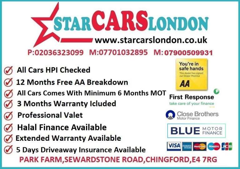 Receive a complimentary 12 months of AA Breakdown Cover with any car purchase. Our commitment to quality includes ensuring that all our cars come with a minimum of 6 months MOT. In the rare instance where a car has less than 6 months MOT at the time of sale, rest assured that we will conduct a fresh MOT unless explicitly stated otherwise in a special note. Your peace of mind is our priority, For More Clear View of the Car Have a Look Video of the car just go to YouTube by just entering the registration number of the car,NEXT MOT IS DUE 17/01/2027, THIS CAR COMES WITH PLENTY OF MOT HISTORY, THIS CAR IS FULLY HPI CLEAR AND IT ALSO COMES WITH OUR 3 MONTHS WARRANTY FOR ADDED PIECE OF MIND,5 DAYS DRIVEAWAY INSURANCE AVAILABLE, EXTENDED WARRANTY AVAILABLE, HOME DELIVERY AVAILABLE, WE DO HALAL FINANCE, CREDIT AND DEBIT CARDS ACCEPTED, FINANCE AVAILABLE, WE ARE OPENS 7 DAYS MONDAY TO SATURDAY 10 TILL 7 SUNDAY 11 TILL 7