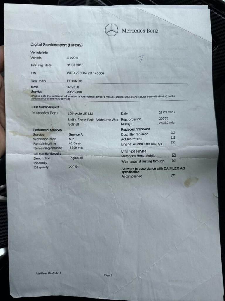 Posting for 9+ years2016 Mercedes-Benz C Class 2.1 C220d Sport (Premium) Saloon 4dr Diesel 7G-Tronic+ Euro 6 (s/s) (1...
