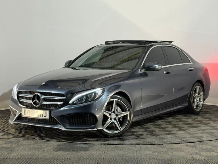 High-spec AMG Line Premium Plus with electric panoramic roof, Burmester premium sound, reversing camera, Apple CarPlay, sat-nav, front & rear sensors, keyless go, full black leather with heated electric memory seats and smooth 7G-Tronic auto box. Mercedes service history. The C-Class saloon's sleek design, premium cabin and refined performance make it one of the best executive cars - comfortable, efficient and enjoyable every day. New 12-month MOT will be added for the new owner.