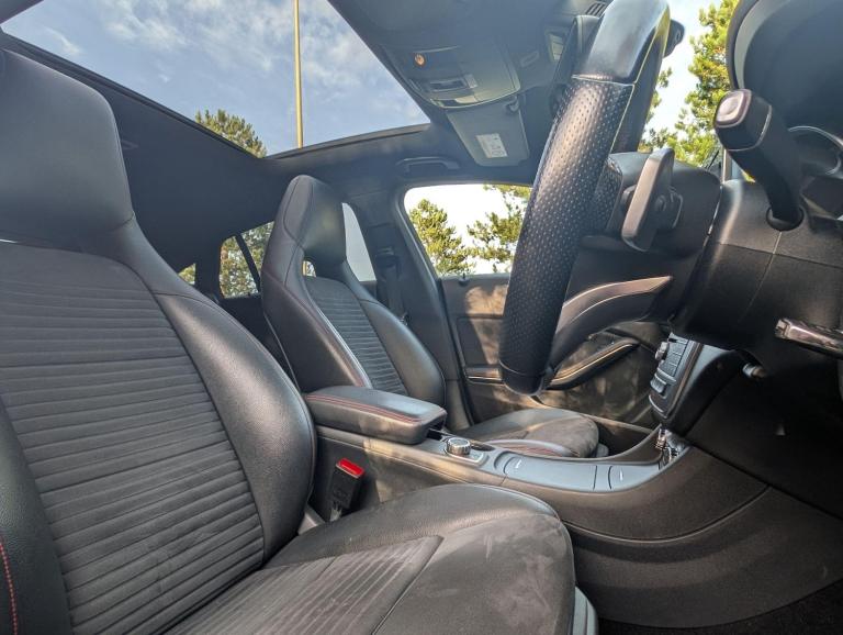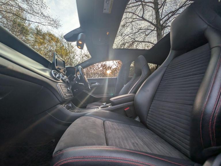 Mercedes-Benz CLA AMG Sport Shooting Brake Automatic finished in Obsidian Black Metallic with black leather interior featuring contrast red stitching, a desirable and standout colour combination that complements the AMG styling. Presenting well throughout, this Euro 6 example is ULEZ compliant offers sleek design, punchy performance, excellent efficiency and practicality. Road tax is only 20 for the year. Equipment includes the panoramic roof, front and rear parking sensors, Dynamic Select drive modes, Bluetooth phone and audio connectivity, air conditioning, full electrics and power folding mirrors, creating a premium and sporty driving environment with the practicality of the Shooting Brake body.Well maintained with a fully documented service history, additional works Inc All four brake discs and pads have been renewed at a cost of over 800, supported by further invoices of over 700. Supplied with a new MOT and a free 3-month warranty, offering additional peace of mind for the next owner.Contact us today to arrange your viewing and test drive.Walkaround video available on request.